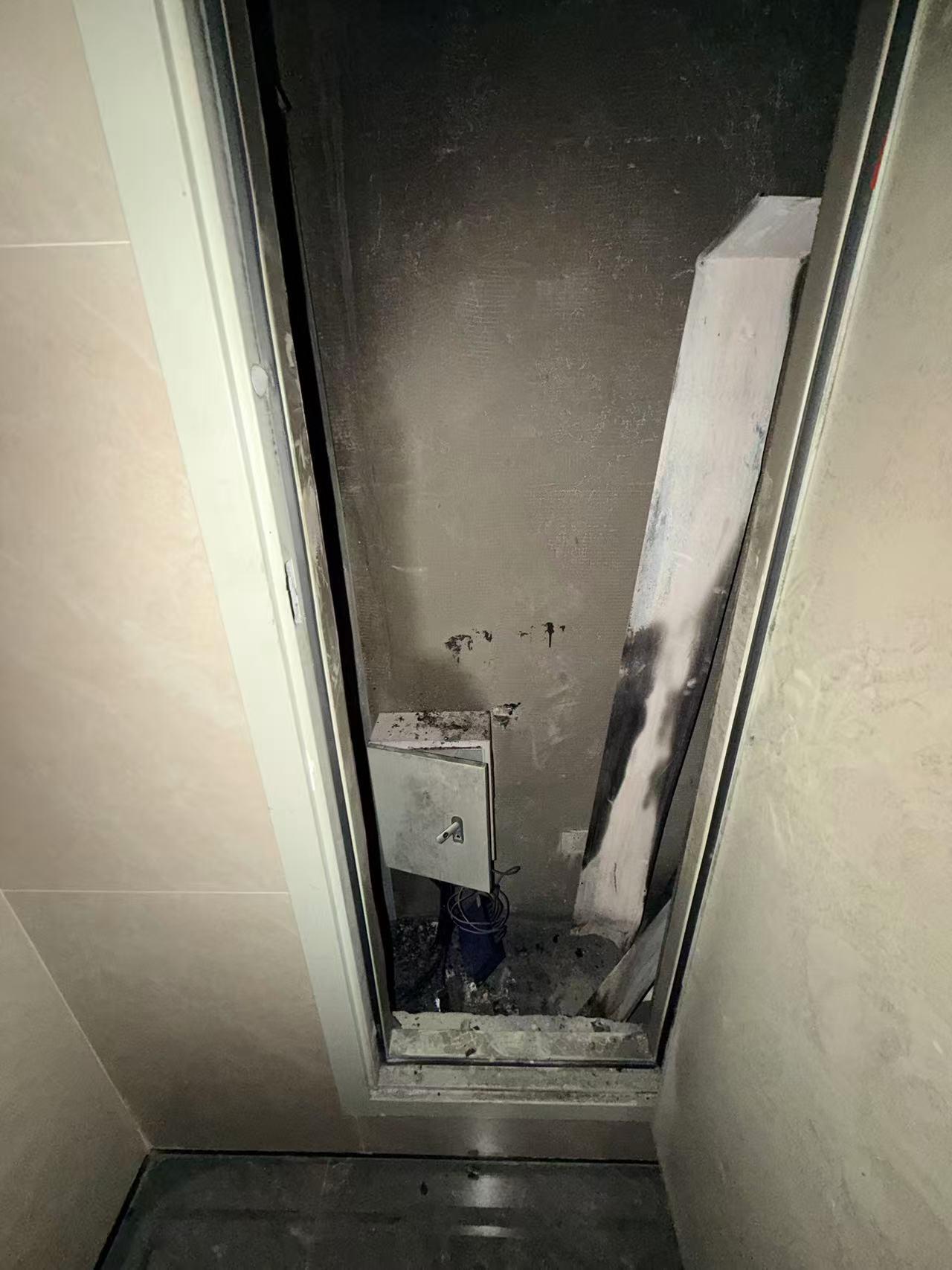 前几天,西海岸灵山湾和玺业主反映说,某楼座单元电井起火了,整个电井从下到上都烧了,从楼座外面也能看到冒烟了。