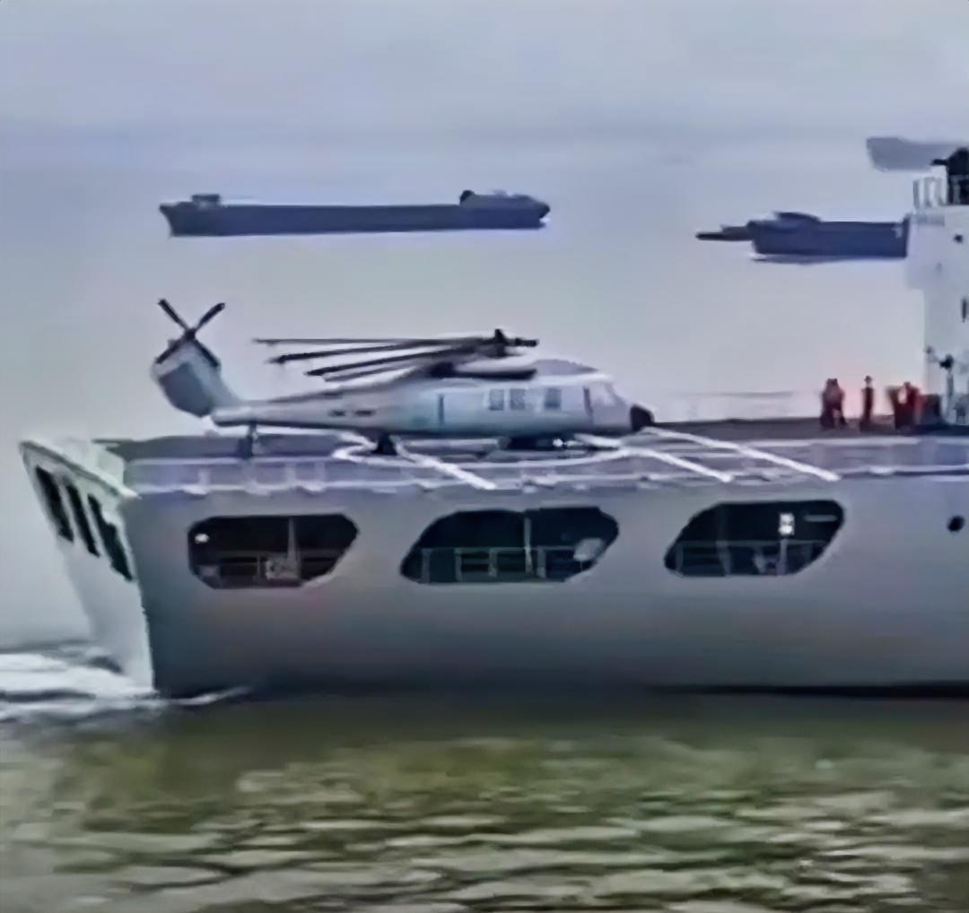 最新批次的903A型综合补给舰又开始试航了,舰艉后甲板搭载了国产直-20舰载直升机的全尺寸模型,这款10吨级的通用直升机与之前批次的903A的舰载直升机不一样,之前航空保障系统主要是直-8、直-18这种大型直升机与直-9轻型直升机。