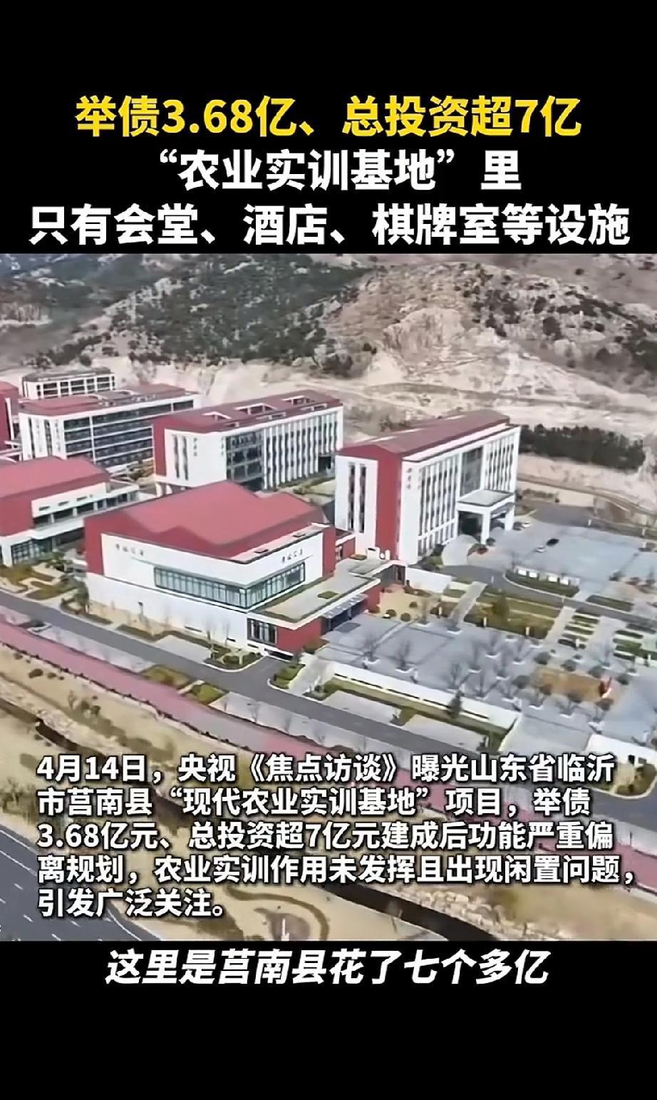 昨晚14日,总台《焦点访谈》播出了《举债3.68亿、总投资超7亿的农业实训基地为何不见农业影子?》