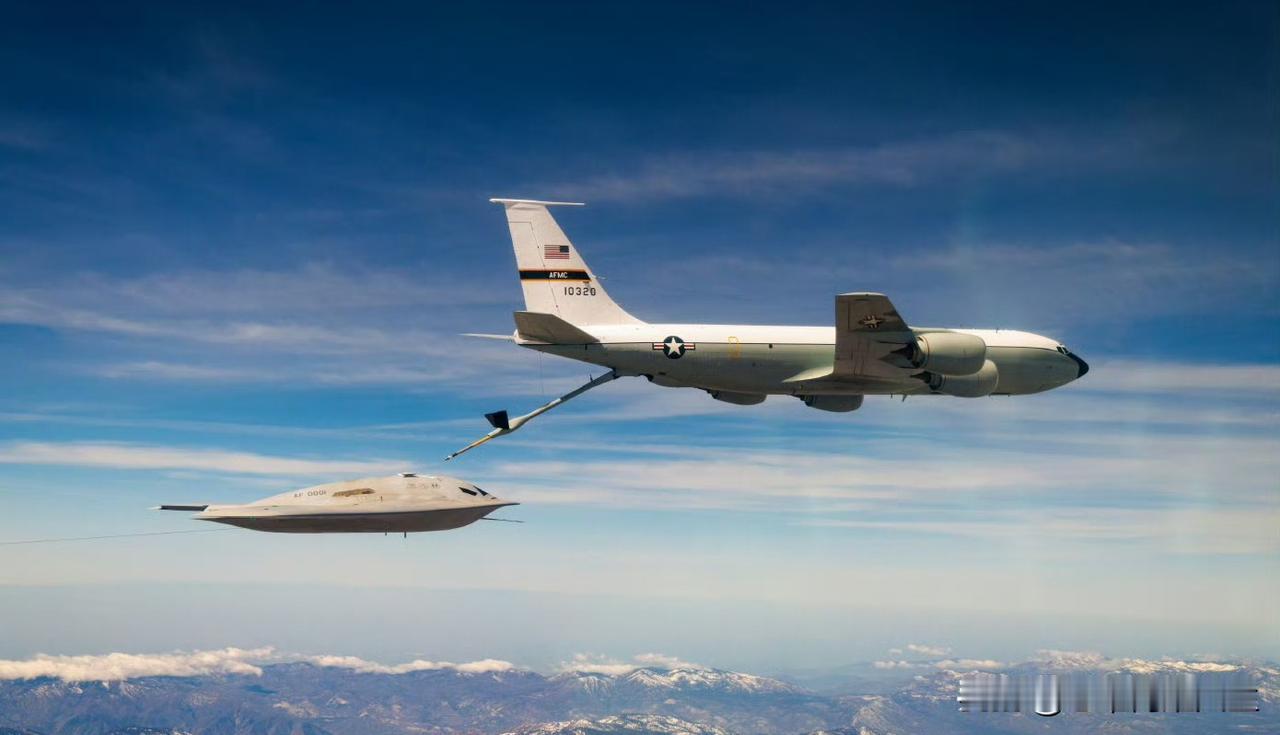 老美终于大大方方的近距离展示自家的B-21隐身轰炸机授油照了! 从画面里看,美