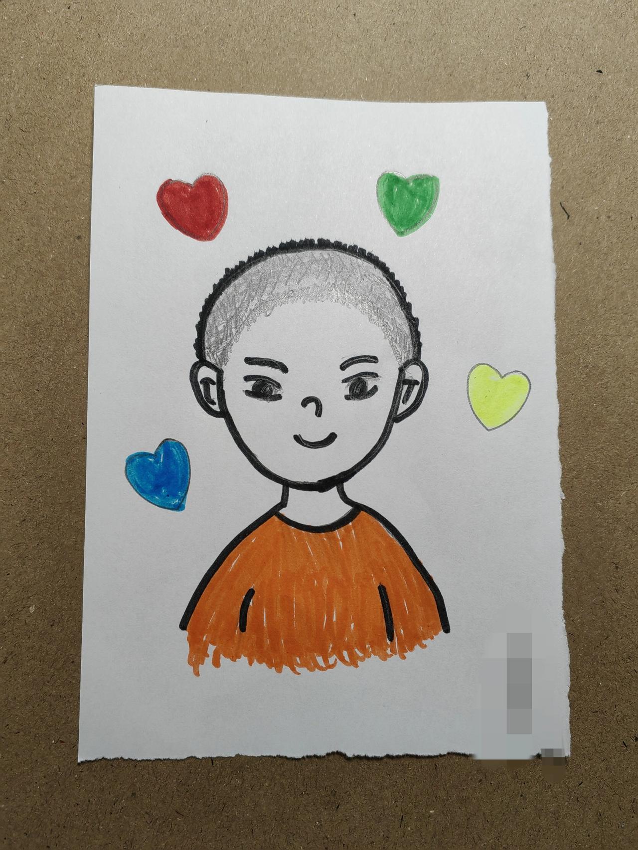 最后,老二的卡通自画像,是我帮他一块画的。最后果然画得三不像,不知成了谁家的娃。[捂脸][捂脸]