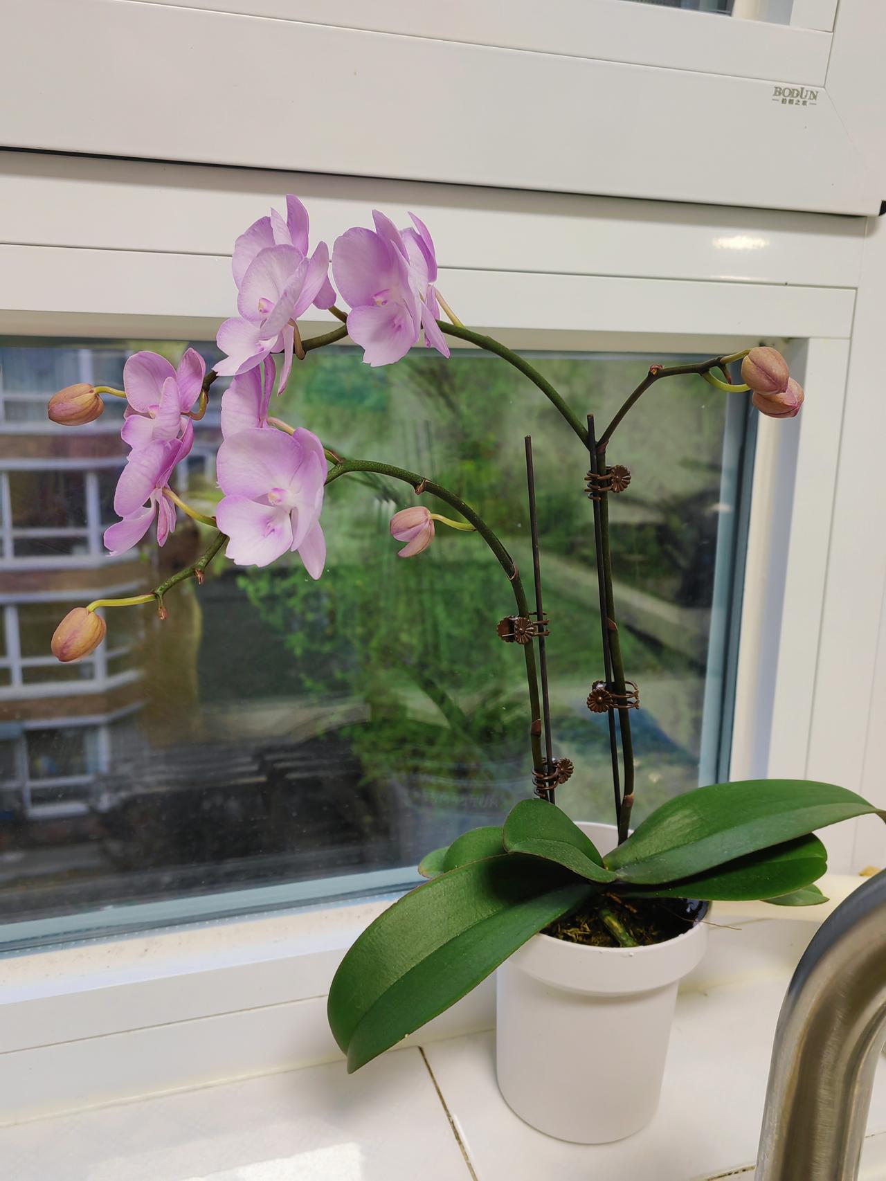 窗内的蝴蝶兰马上又要绽放一朵粉花,窗外的榆钱树在春雨的滋润下,好似更绿了。