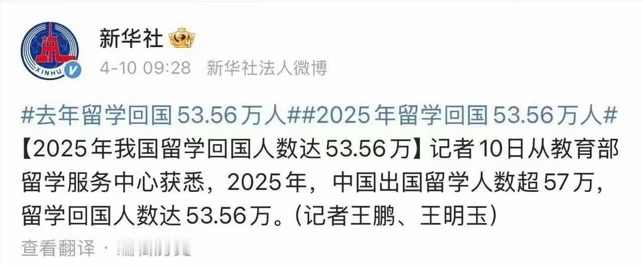 时代真的不一样了!根据媒体最新发布的数据,我国去年出国留学人数超过57万,可万万没想到的是,同期选择回国发展的留学生竟高达53.56万。