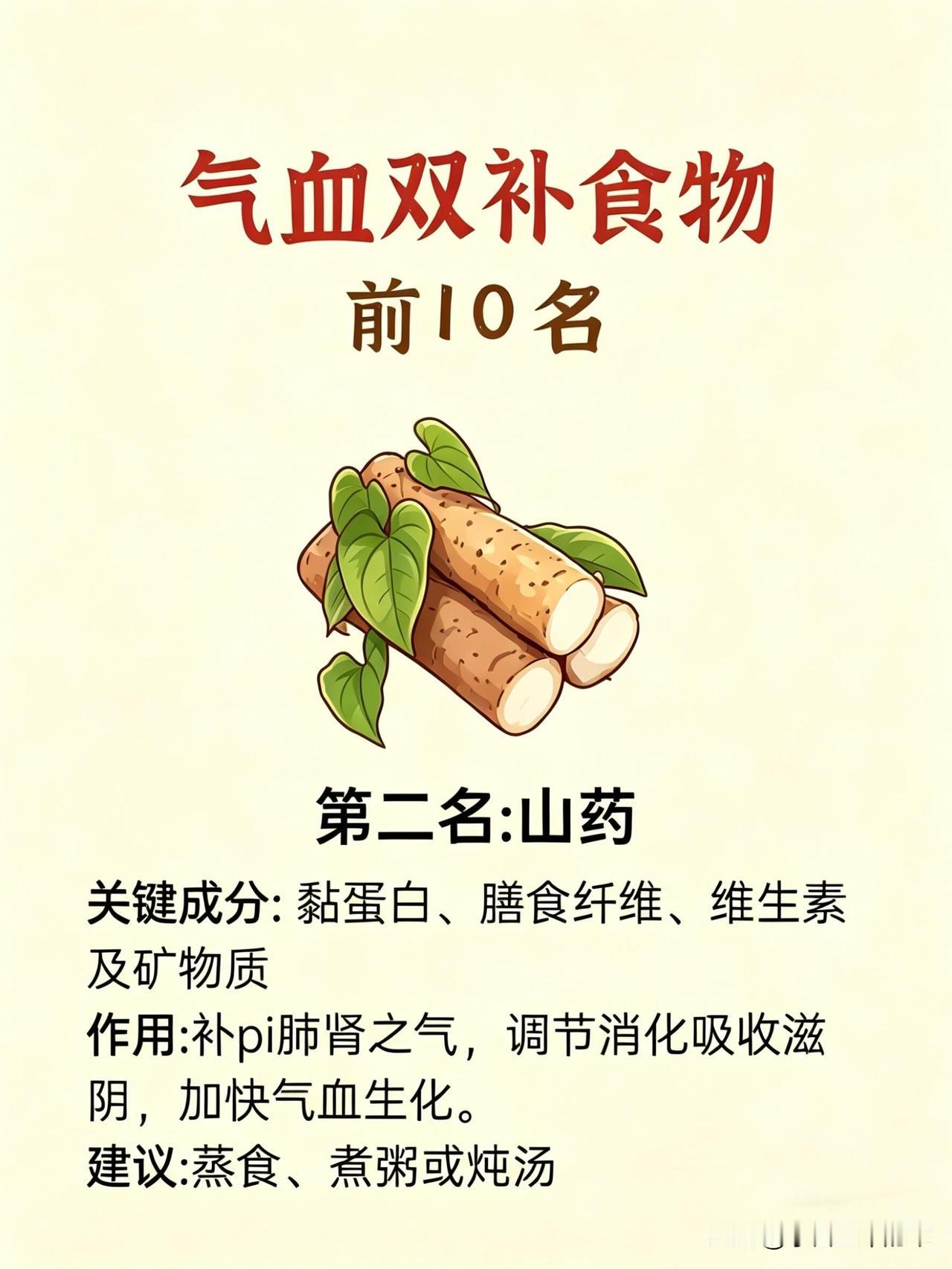 第二名是山药。它补脾肺肾之气,帮我把消化吸收的底子打好,让吃进去的营养都能化成气血。我每天蒸山药当早餐,或是煮进粥里,脾胃养好了,吃什么都香,脸色也慢慢透出了红润。