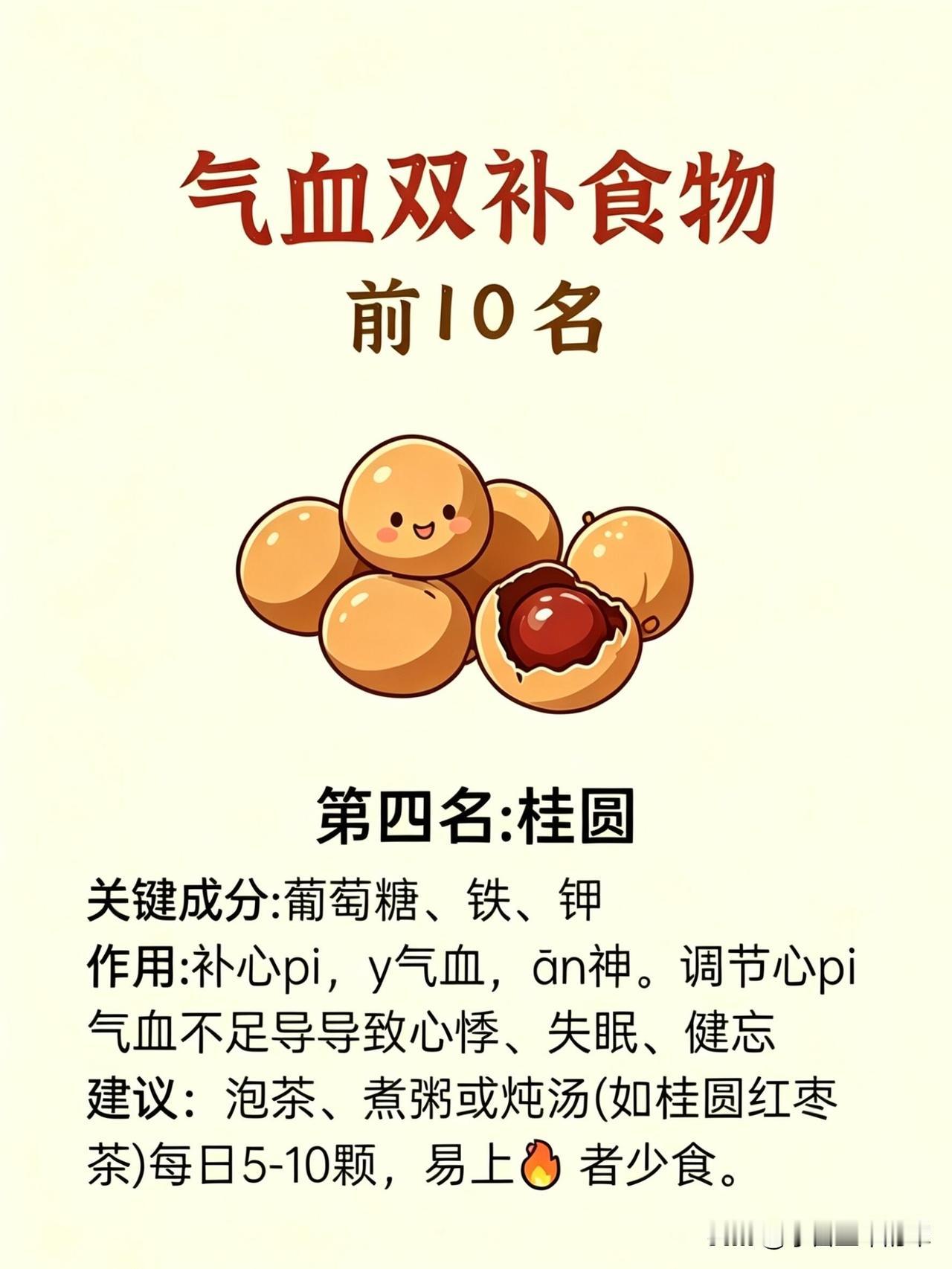 第四名是桂圆。补心脾、益气血、安心神,帮我调理了熬夜导致的心悸失眠。我每天用5-10颗泡红枣茶,睡前喝一杯,入睡快了,睡眠质量也好了,早上起来再也不昏昏沉沉。