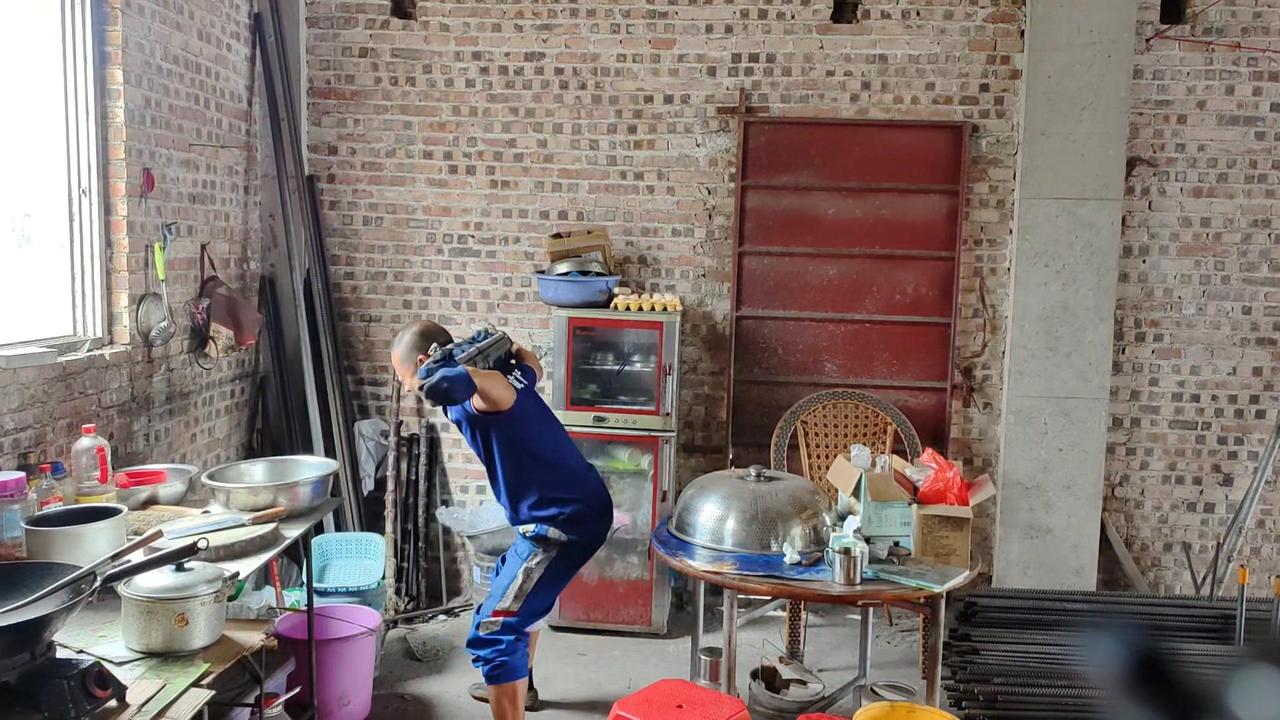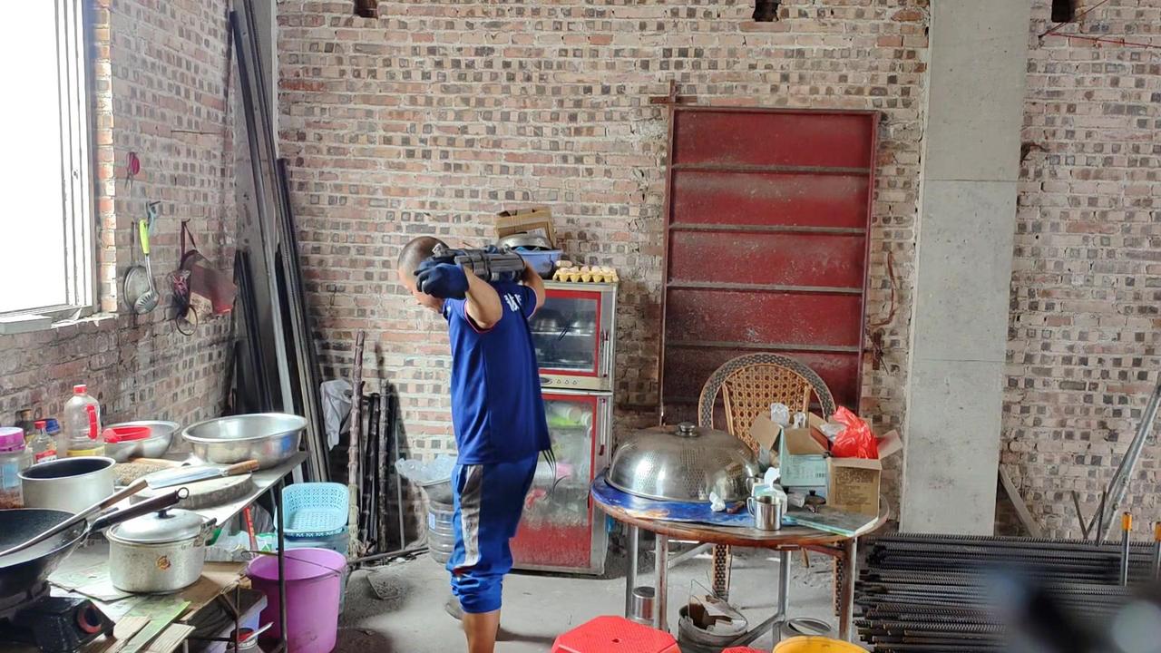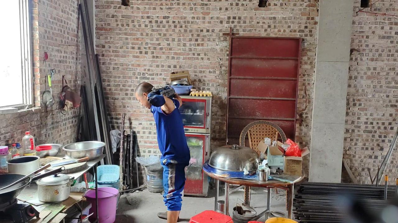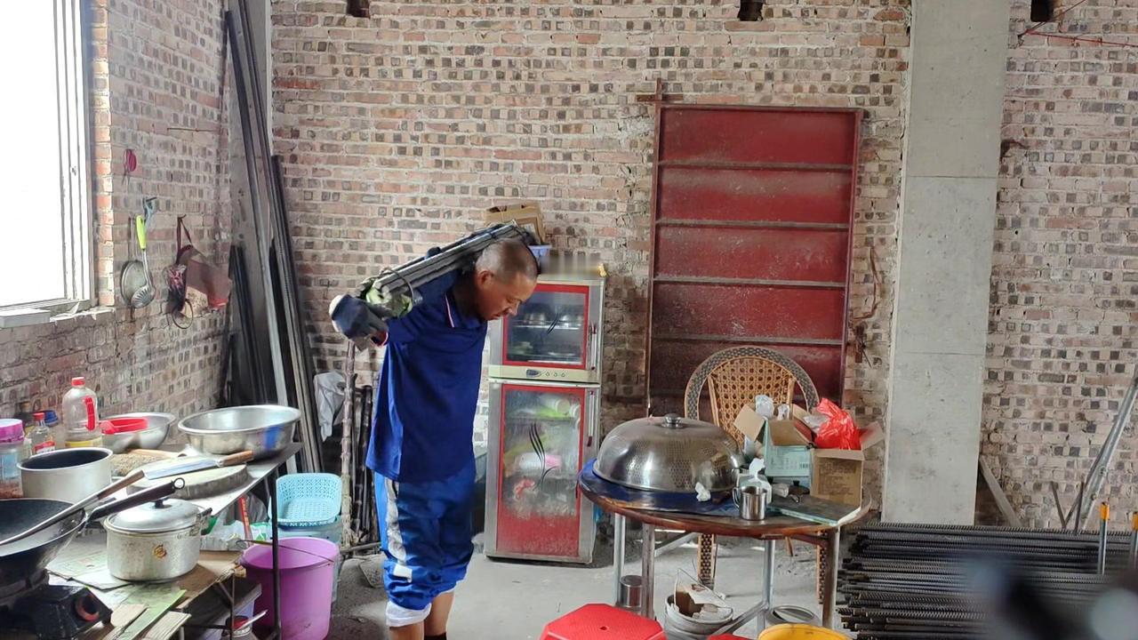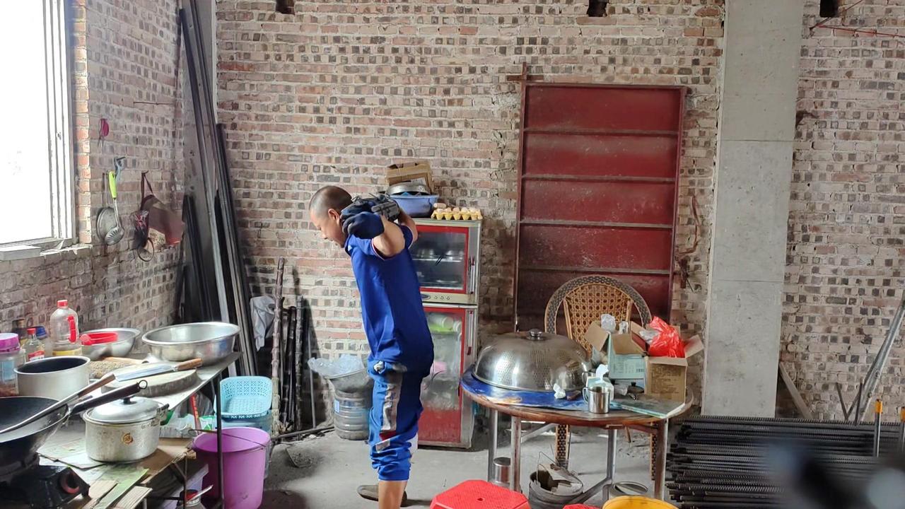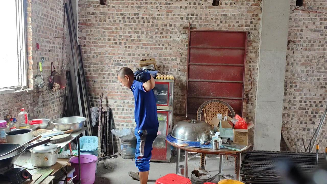 平时干活用腰多,现在腰部不得劲,不敢直接负重102斤就练。先背20斤书包试练几个,上肩时还是吃力,毕竟好几天没锻炼了,身体还没完全适应。而且健身房能弯腰放负重,这里要自己搬上去,有点不同。