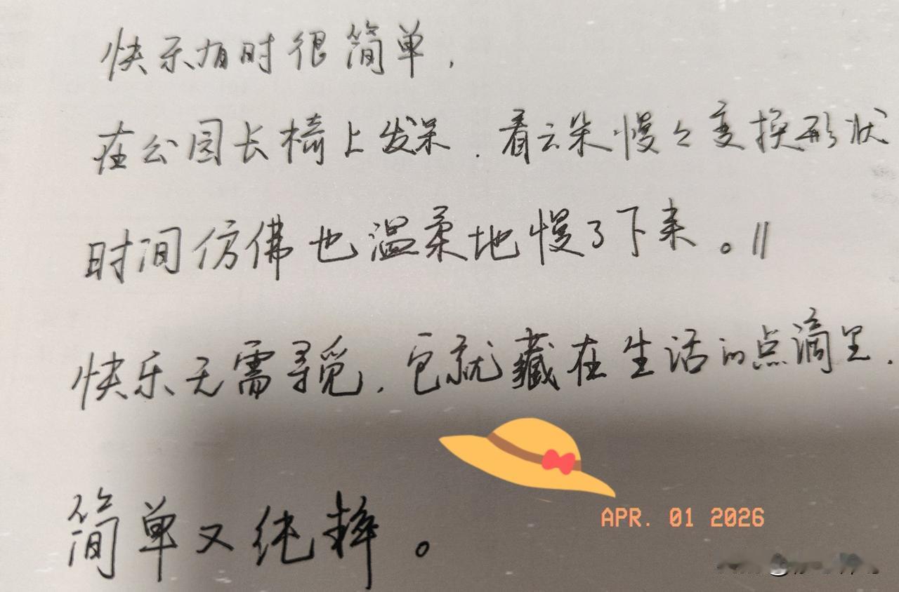 其实不必苛责自己,生活不必拘谨,写作也不用刻意拔高。一时的情绪、平凡的日常,都是最好的素材。人活得简单一点,欲望少一点,放下多余的执念,快乐自然就会来到身边。简单一点,快乐就来了。每天写作的意义在哪里? 分享今日的人生感悟