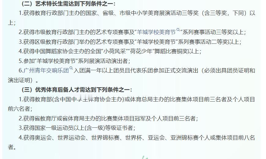 如果是初一、初二的家长,孩子还有机会去通过体育艺术特长生这条路去考入一个不错的高中,广州中考体育艺术特长生的条件,欢迎各位家长查看第二第三张图片!