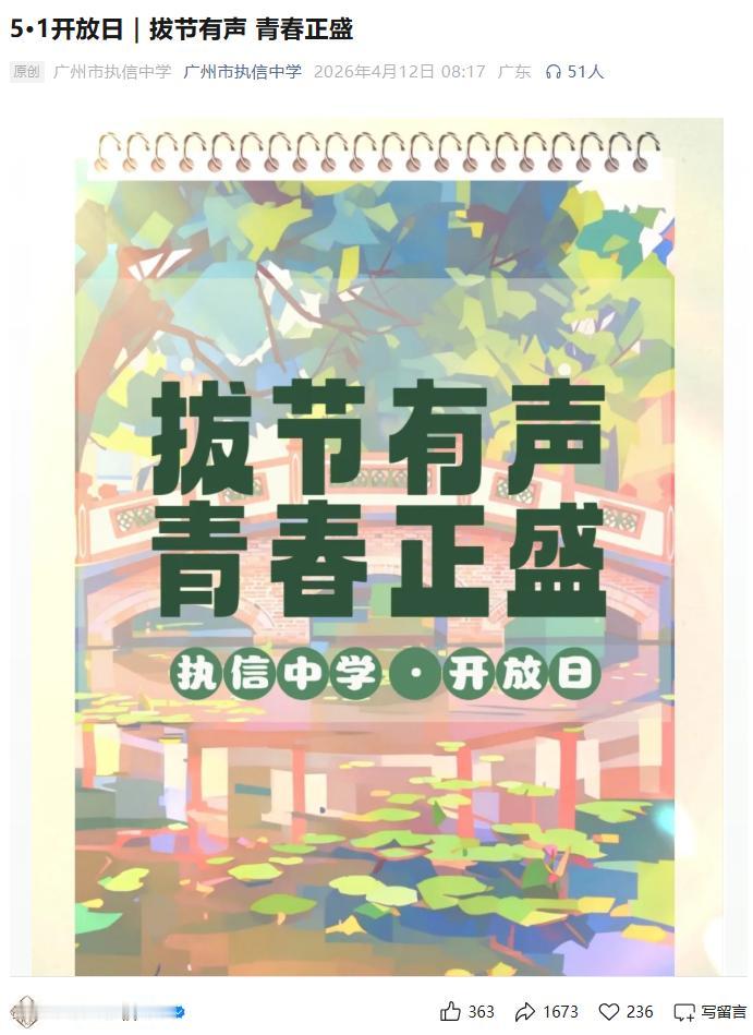 2026年5月1日,广州市执信中学2个校区校园开放日,有空的家长可以带孩子过去看