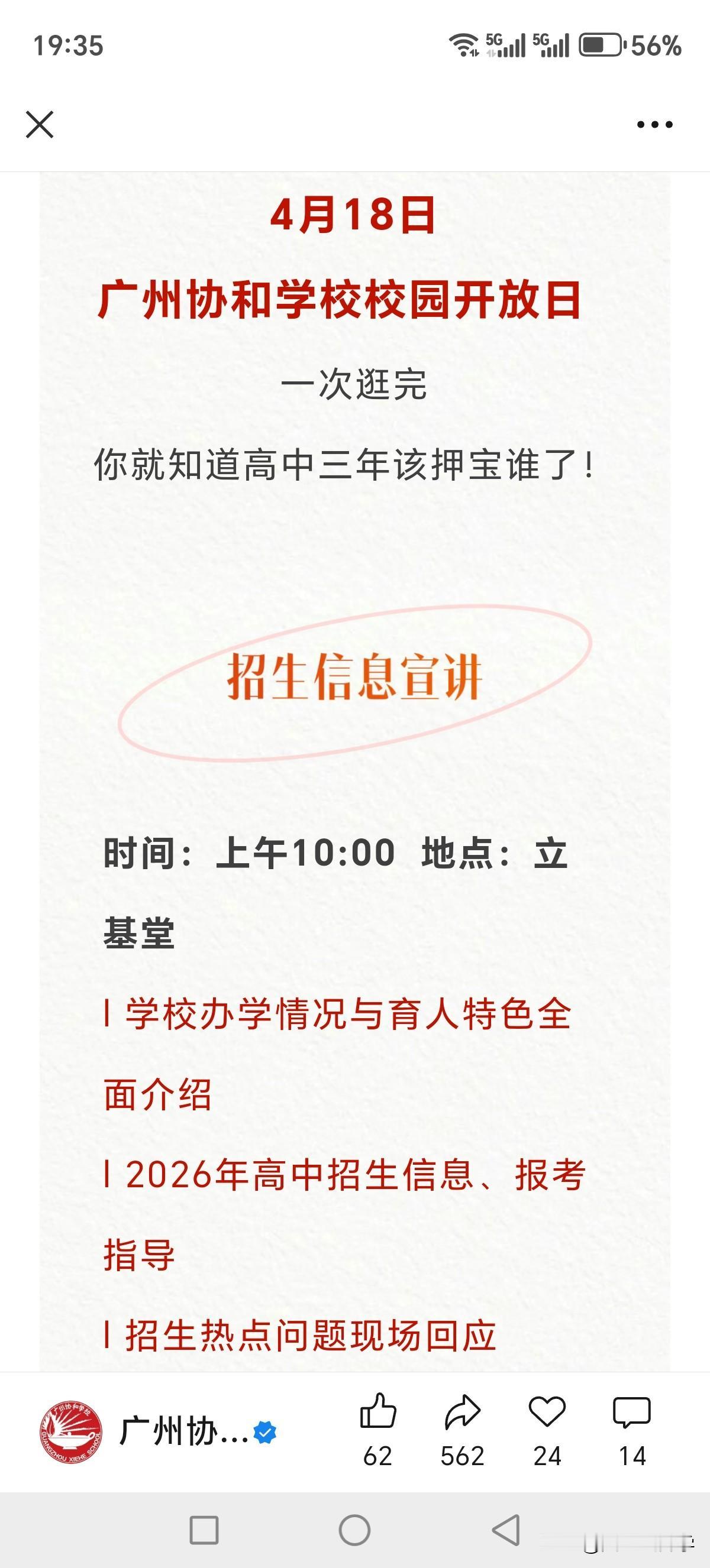 广州协和学校开放日来了:时间在2026年4月18日(周六),有空的家长可以带孩子去看看。市属高中,面向广州11区户籍生,非户籍招生! 这几年,区属龙头崛起,协和跟华侨已经没什么热度了。广州协和学校 广州初升高