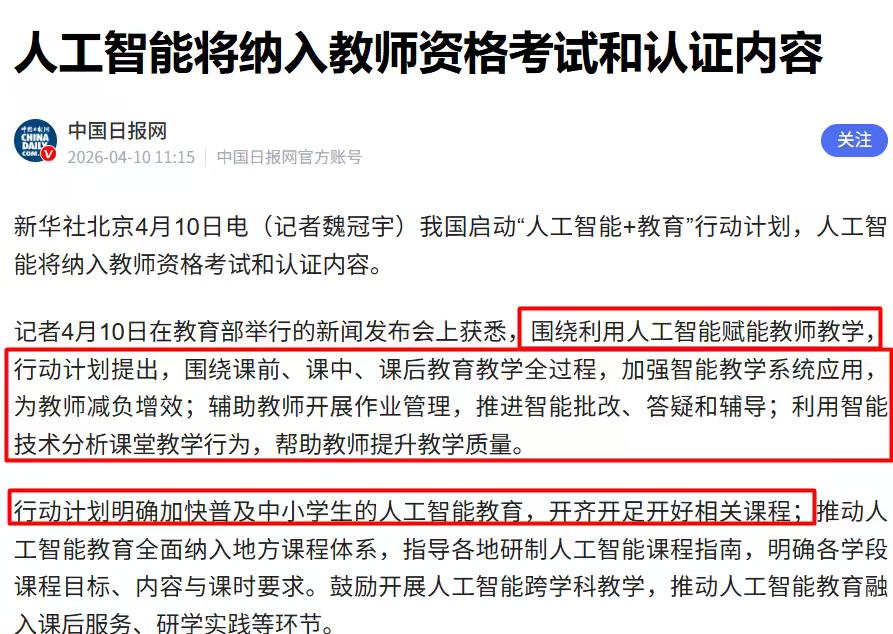 ——AI纳入教师考核:顺应时代趋势,善用而非依赖! 近日有新