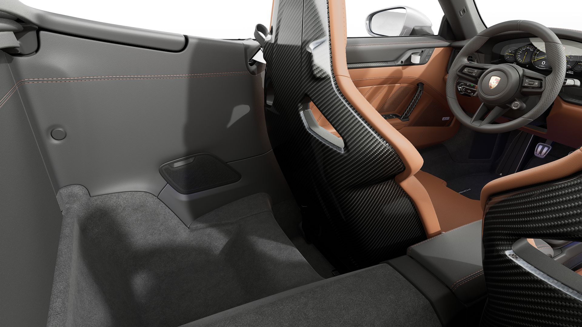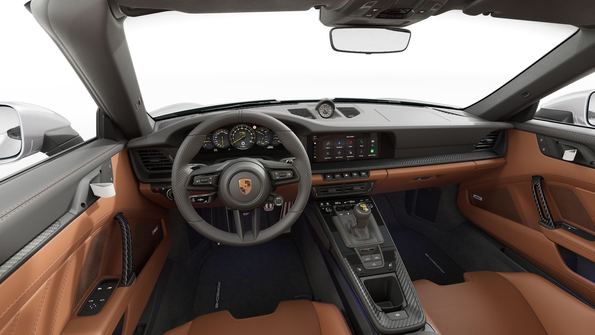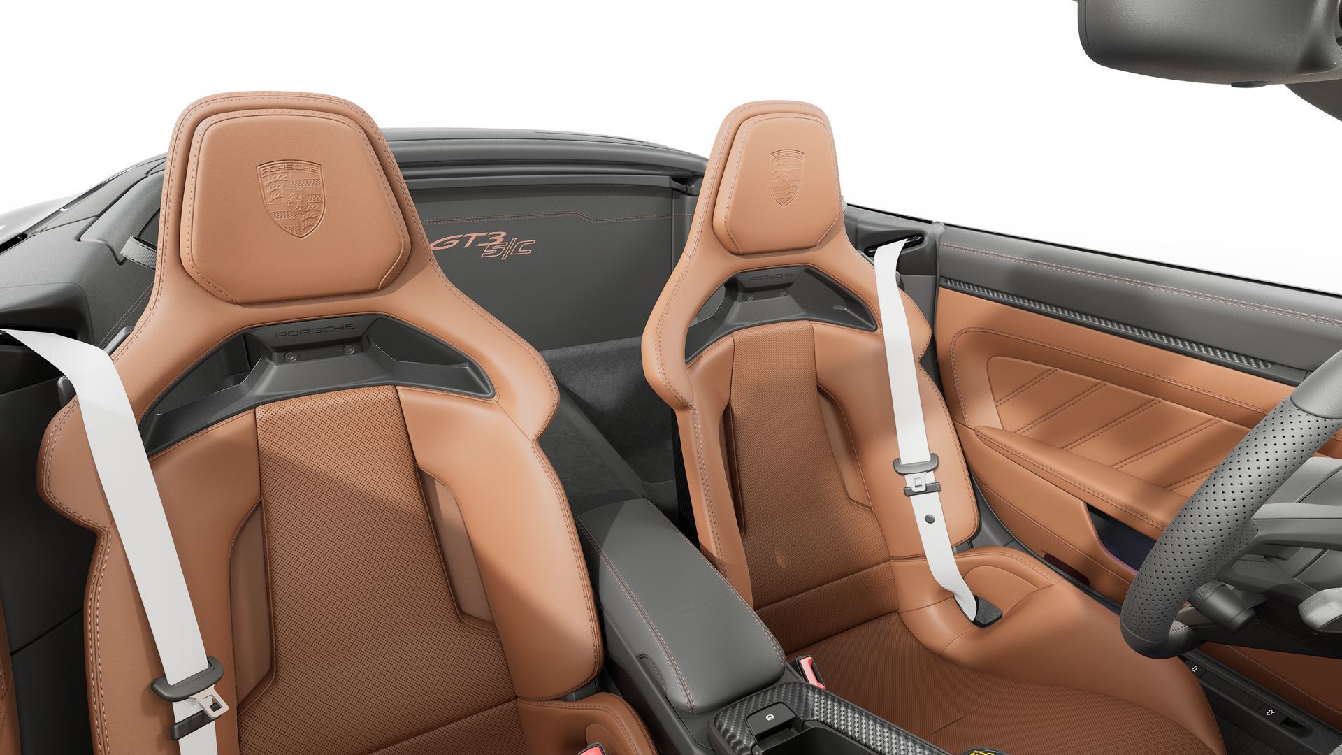 新车 Porsche 911 GT3 S/C,敞篷车就得chill一些,选个棕色真皮内饰,不需要那么战斗的黑色翻毛皮。