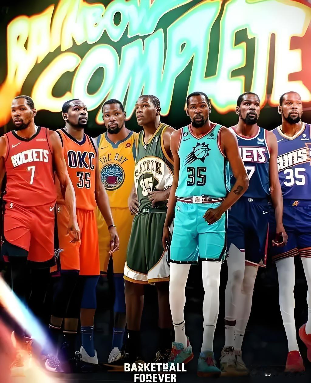 目前,杜兰特的季后赛总得分为4985分,排在历史第七!