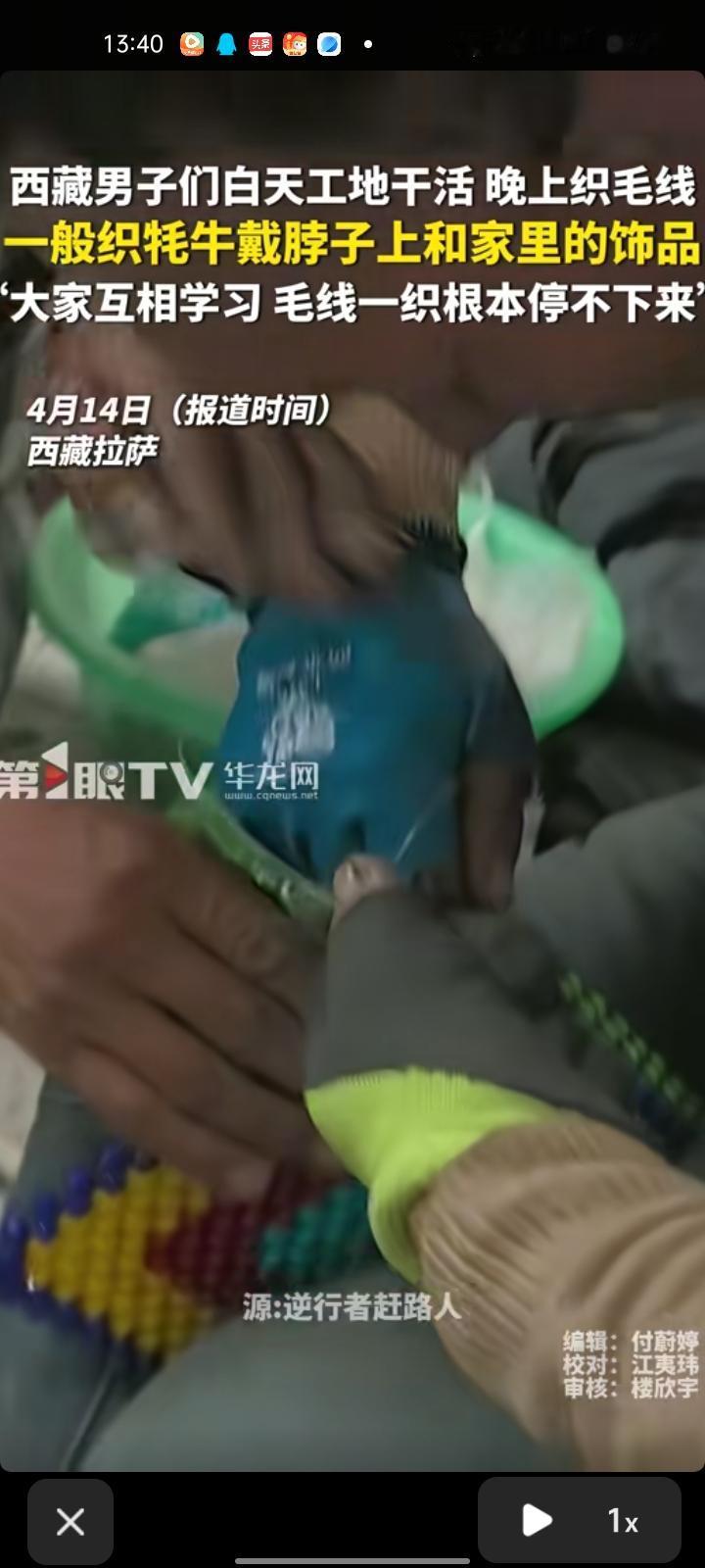 4月13日,拉萨市墨竹工卡县。男子们白天在工地干活,晚上织毛线,织的都是农村平时