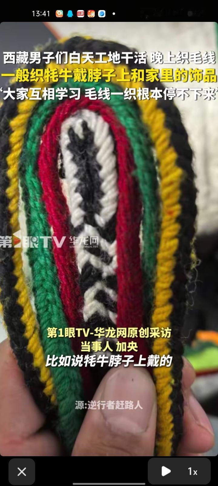 4月13日,拉萨市墨竹工卡县。男子们白天在工地干活,晚上织毛线,织的都是农村平时用的,例如牦牛脖子上戴的饰品。他们互相学习,毛线一织根本停不下来,这是很有意义的。