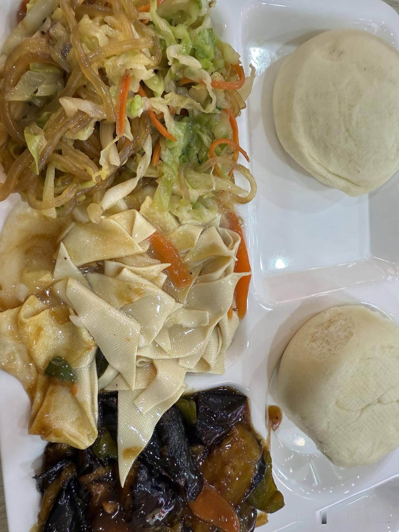 常在普兰店一家店吃快餐,三素盒饭8元。今天到大连一家快餐店吃饭,三素11元,感觉