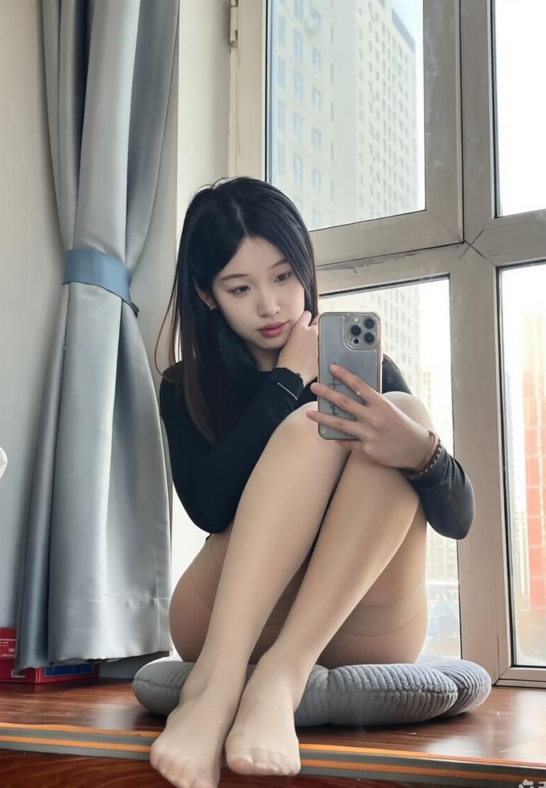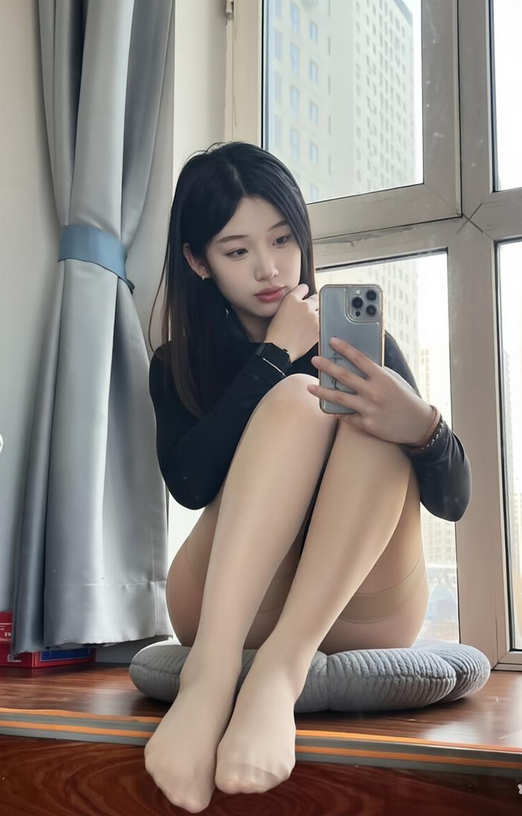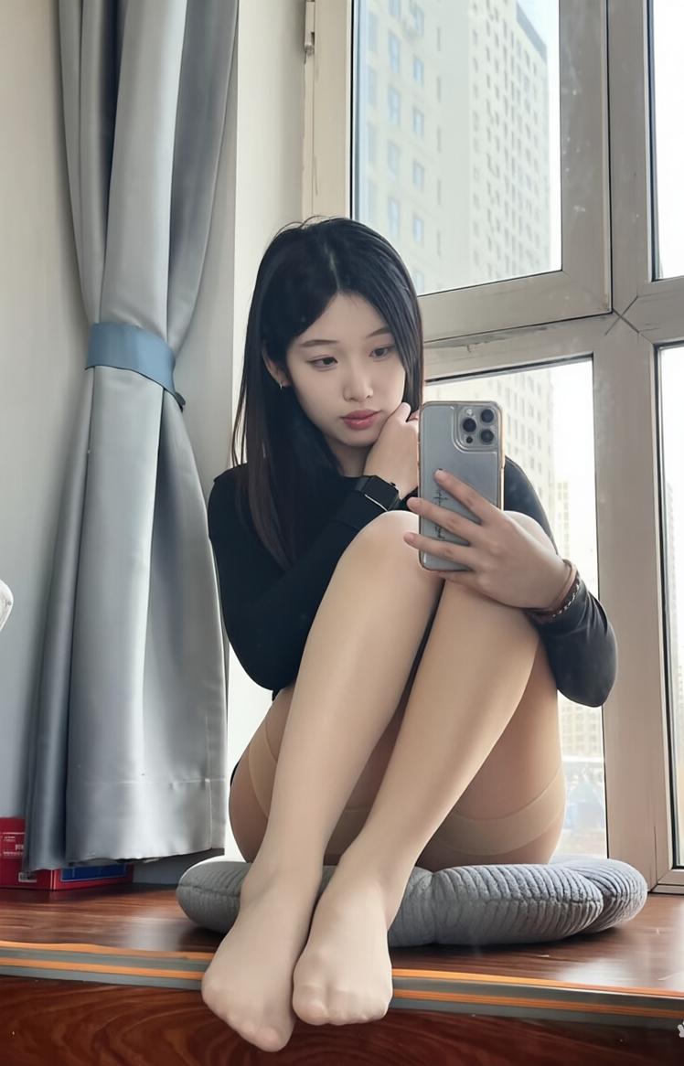 阳光晒在肉色丝袜上,暖乎乎的居家感,随手一拍都很松弛。