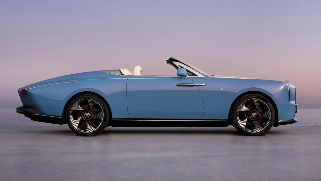 劳斯莱斯这款新车看起来真的是相当的帅耶,而且这款车有个特别独特的地方,当时是敞篷状态的时候,这款车有点像雪茄的造型。