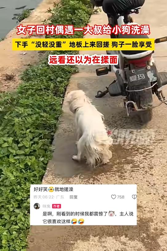 (信息来源:《女子回村偶遇一大叔给小狗洗澡,下手“没轻没重”地板上来回搓,狗子一脸享受远看还以为在揉面》星视频)