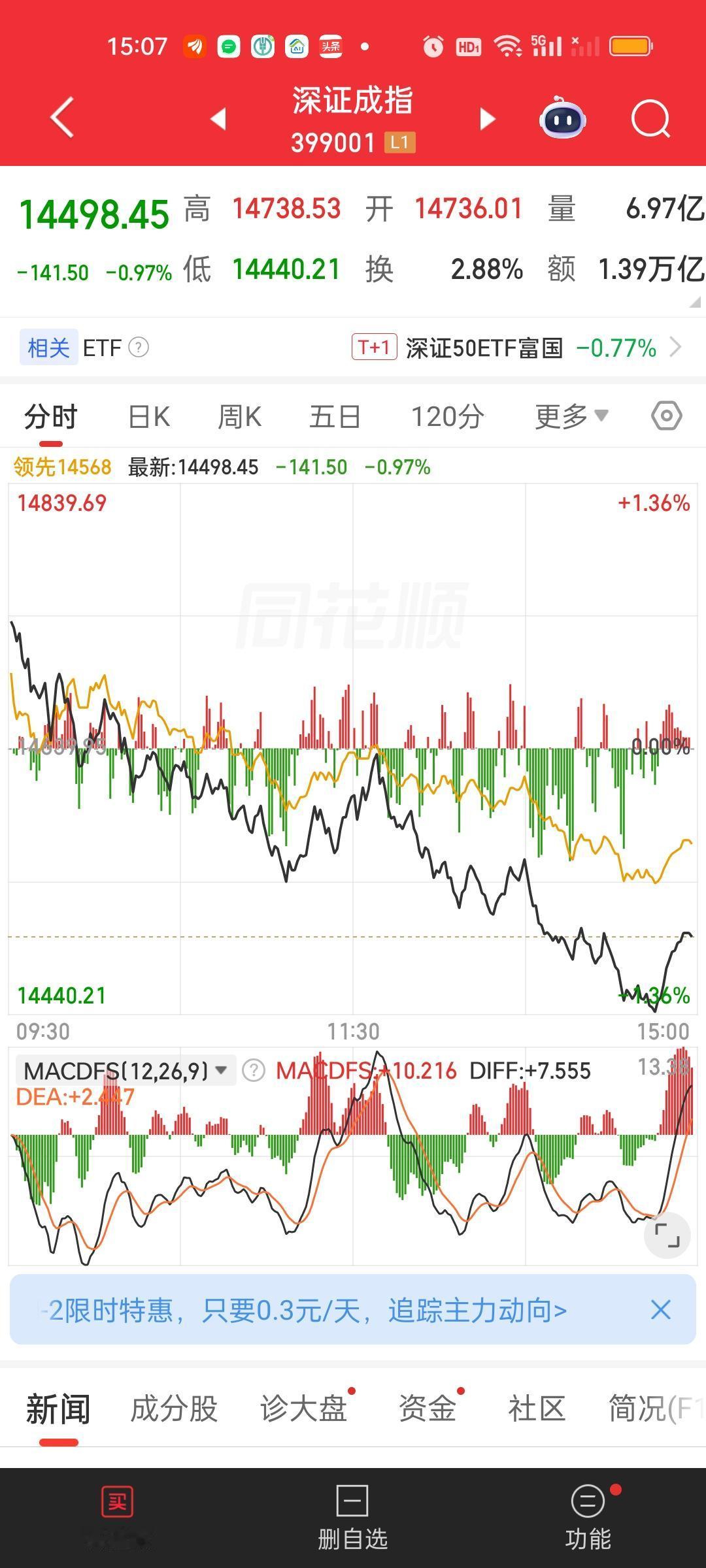 下午成交量缩了529亿,大盘资金也净流出了529亿。这个也太巧了。你说放量529亿,跑了529亿很正常,放的量都是流出的量,但你缩量了529亿,还跑529亿,那这个跑的量就是存量啊。存量为什么要慌不择路的逃跑?
