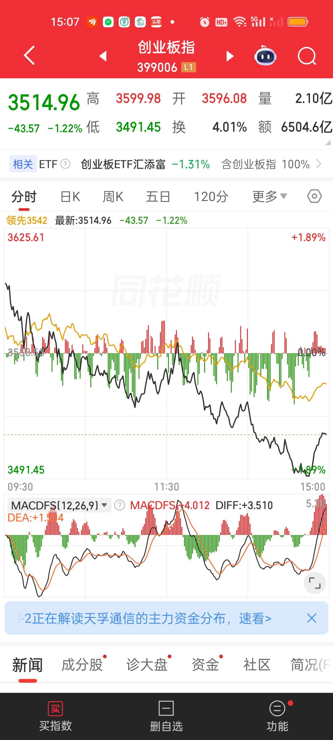 收盘了,个股超3500家下跌但指数收了红盘,这个就有意思了。可以很明显的看到各大指数尾盘都有一个翘尾的动作,这5分钟肯定有人抢筹了。在我们的认知里通常拉尾盘都不是什么好事情。
