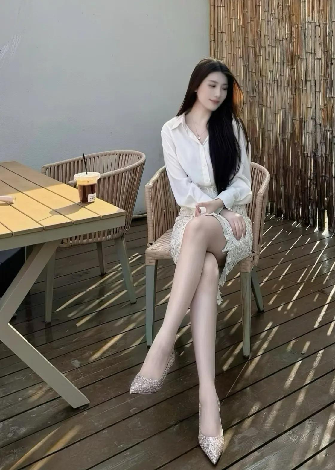 夏日午后,竹林咖啡馆,优雅白衬衫与蕾丝裙的完美搭配,一杯冰咖啡,静享悠闲时光。