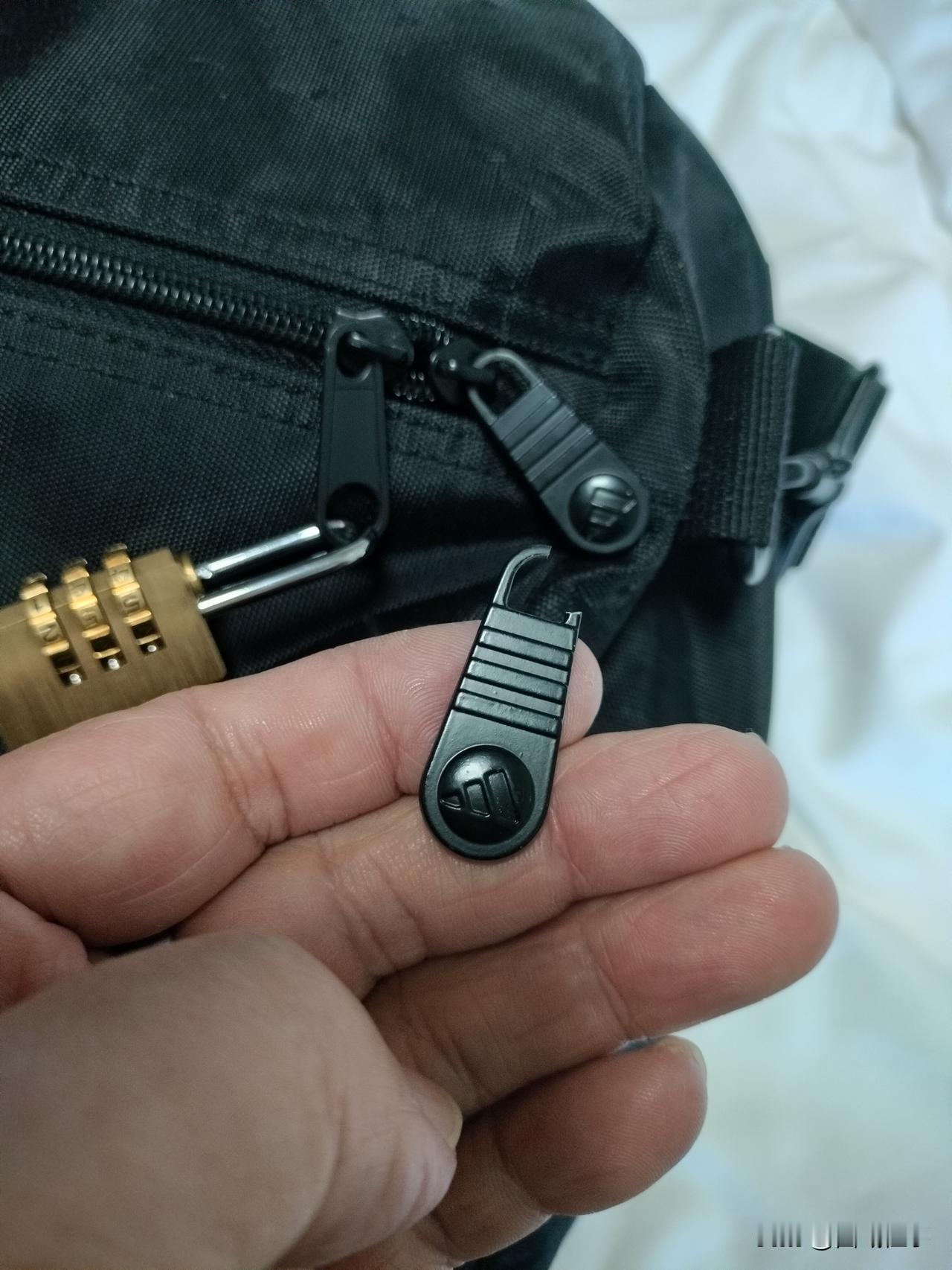 阿迪达斯的包,拉链头太容易断了,质量堪忧呀,四个拉链,断了仨,都是同一位置…,这让我以后还怎么信任你?爆料