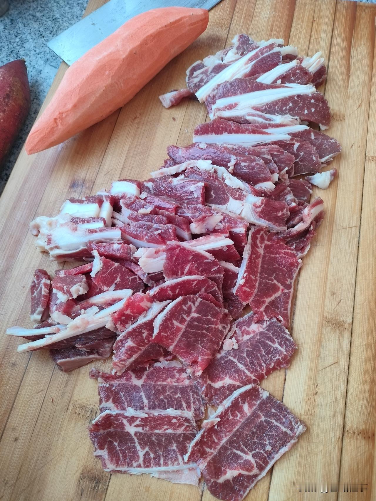 今儿个涮点儿牛肉吃吧,正宗的走地土牛,天天山上跑着吃草的牛娃子,放养的牛,区别于圈养的所谓"草饲牛谷饲牛",肥肉和油很少,都是瘦的。原本以为自己还是一条好汉呢,一顿能吃掉一两公斤呢,结果只吃了一多半儿…