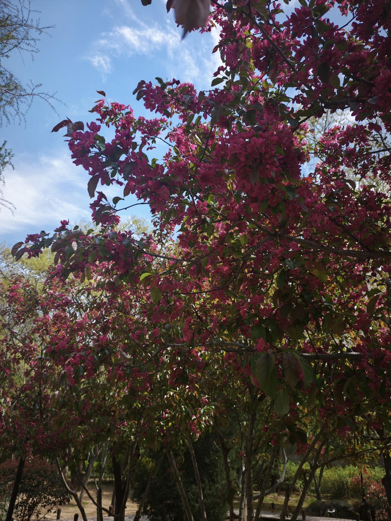 原来我每年从那个紫色的那几棵树前面经过,我都不知道那是什么树,后来我听说海棠有七种颜色。