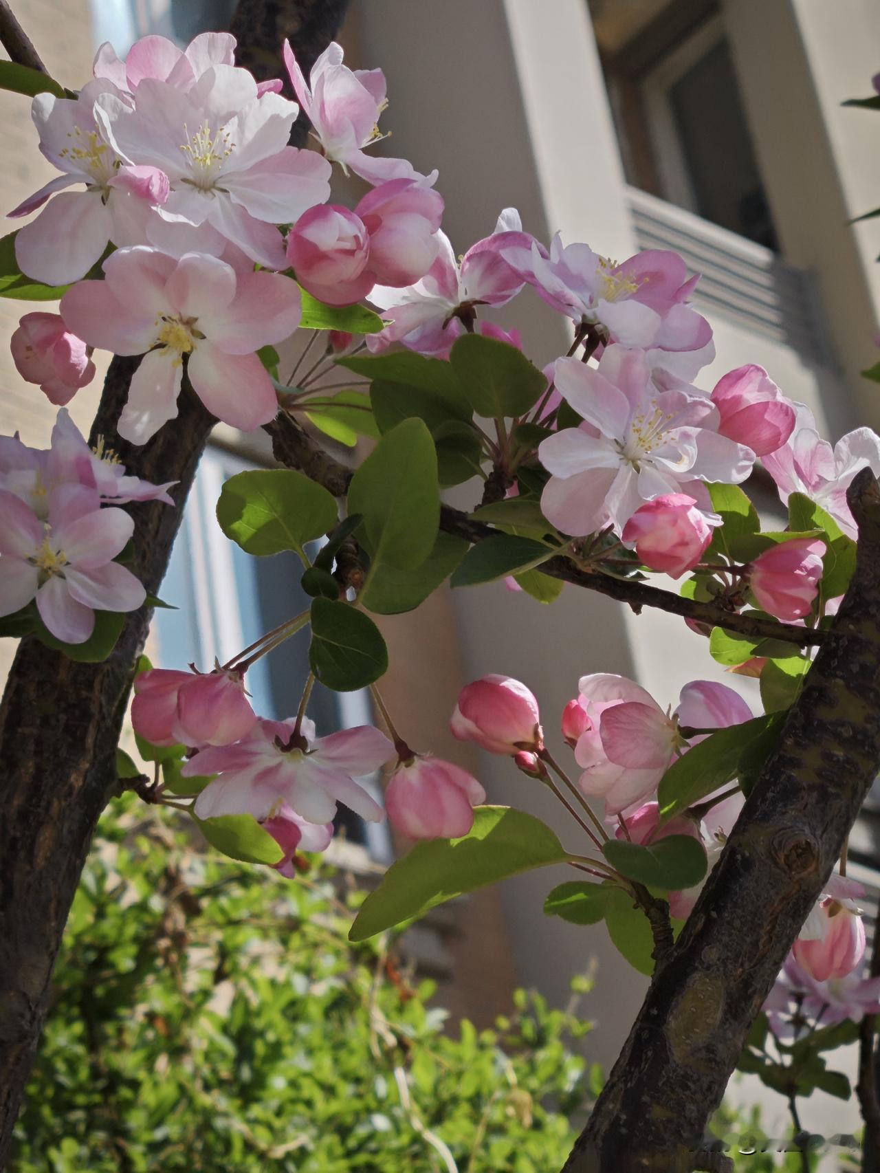 昨天还去李村公园那个海棠大道去看花儿了,有一半开了,有一半没开。