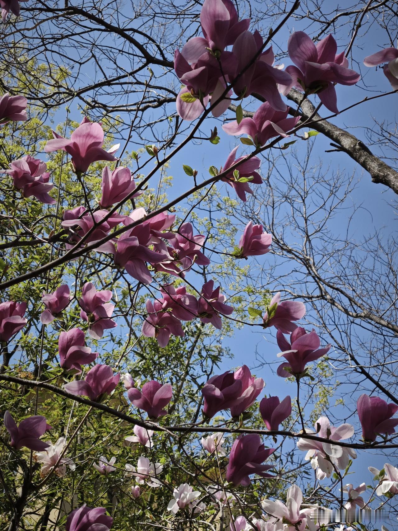 然后就玉兰。宜川路的玉兰还有绿色的,黄色的,白的,粉的,深粉的。