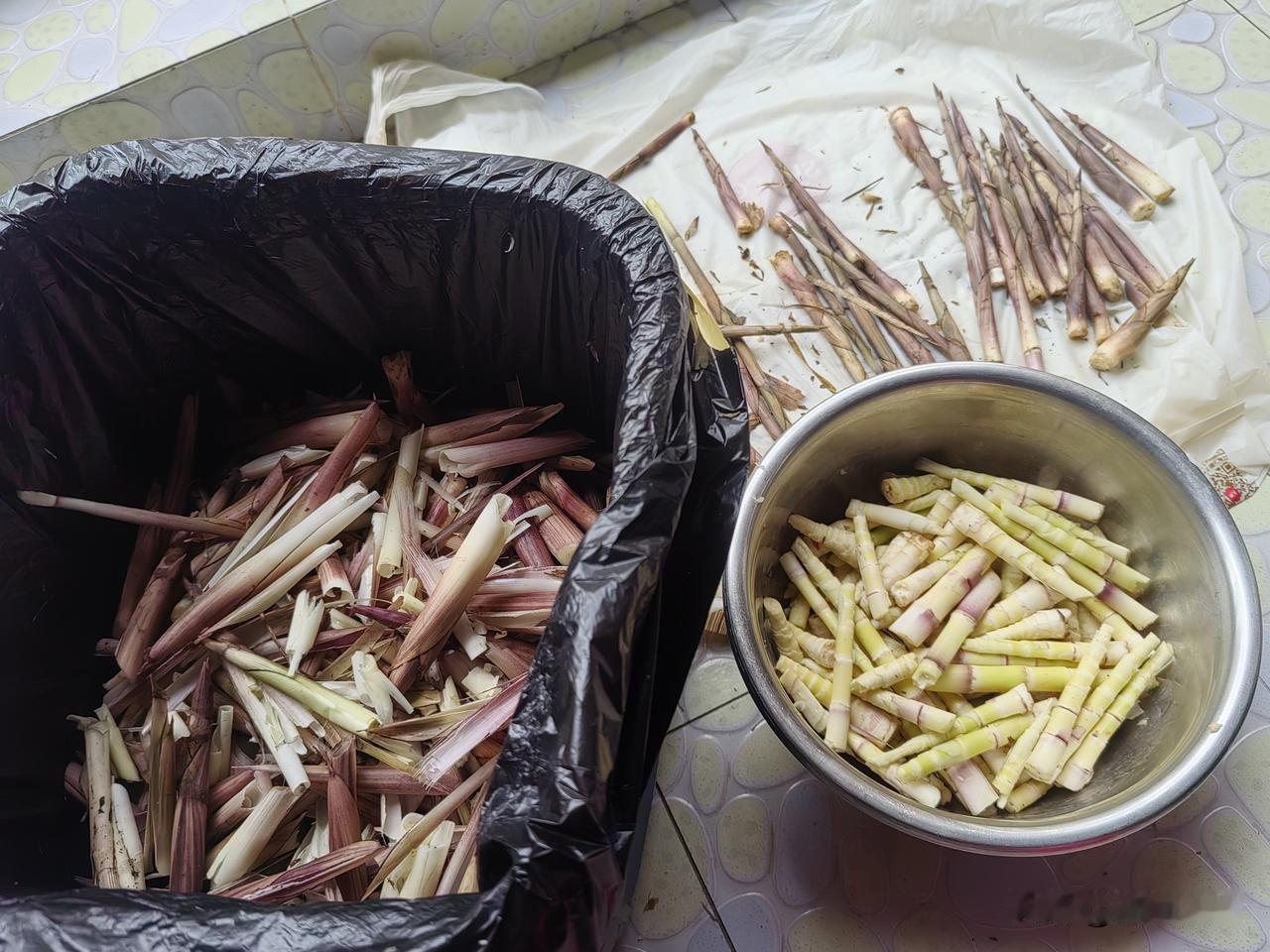 今天的战果是拔到的竹笋数量还行,就是太小了一些,远不及我们前几日来的时候。一是拔笋的人越来越多了,二是竹笋生长的速度远不及被拔的速度。中午几个人拔笋下山后又去聚了个餐,感觉饭菜更加可口,一是身体确实累着了,二是吃(师)出有名,拔笋这么大的运动量之后,补一下身子合情合理。最后笋子是拿回家剥的,花了我一个小时,焯了水先泡着,今天太累了不想再动,明天竹笋炒个腊肉或者红油凉拌应该不错。