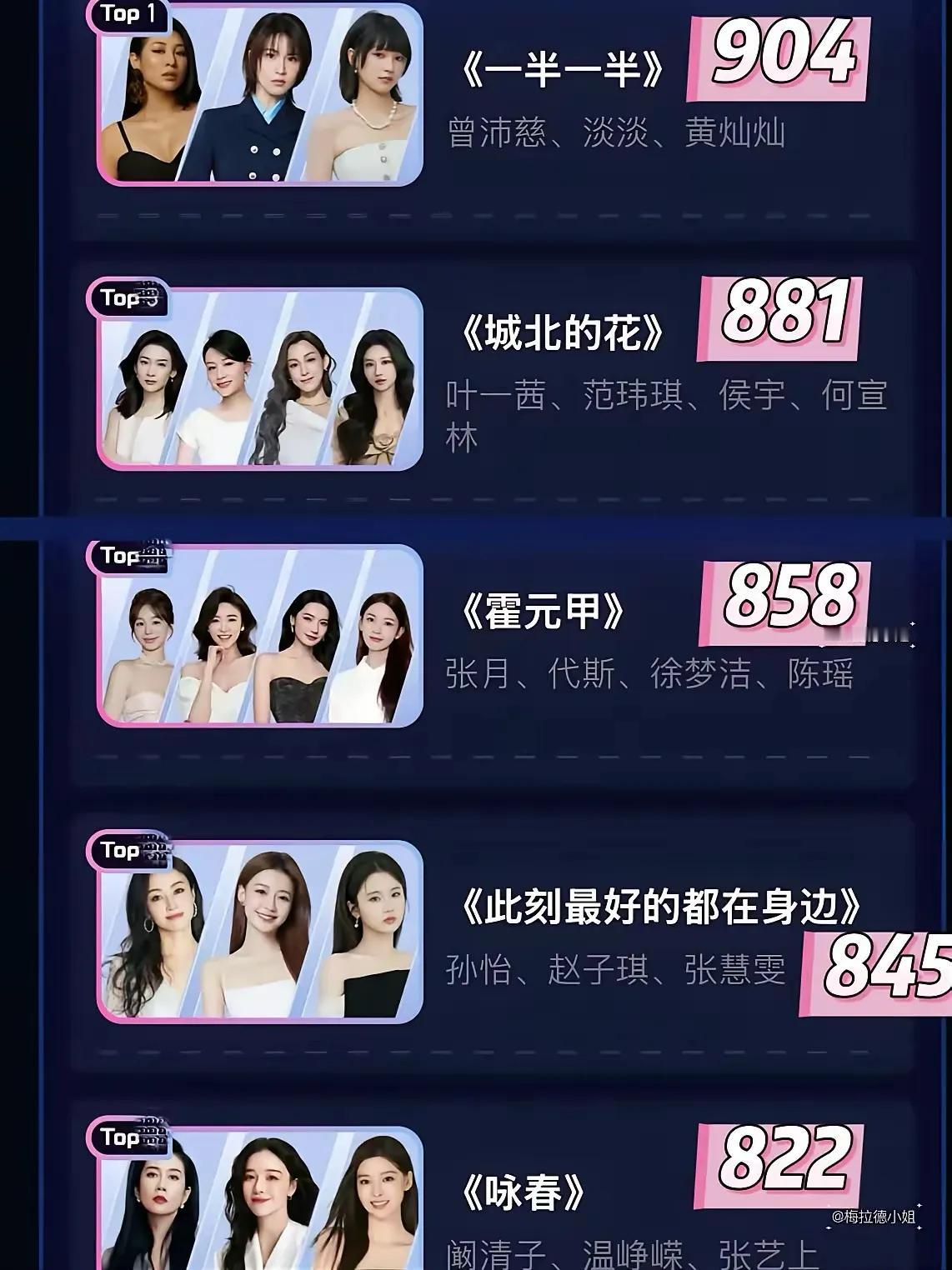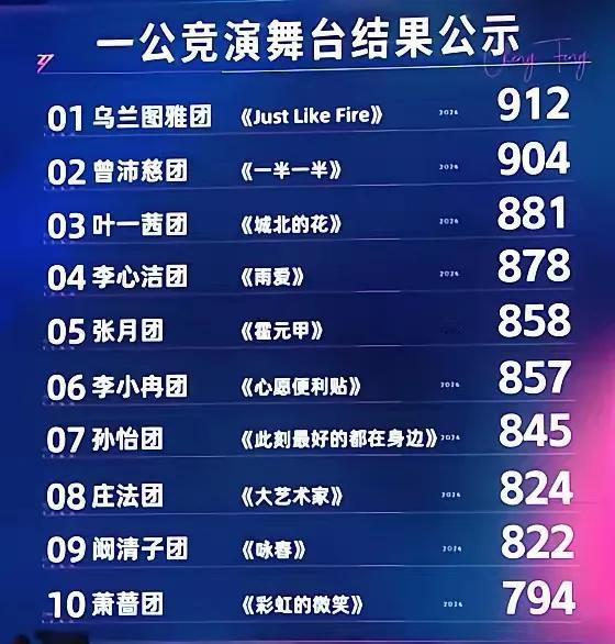 今年直接被李小冉带火了,一公的歌曲传播速度之快。依旧押错宝,本来是萧蔷通告一大堆,孙怡和王濛的画面最丰富,却让曾沛慈断崖式领先。很多人喜欢她的《终极一班》,原来她是实力唱将,还因为《我们与恶的距离》拿到了最佳女配奖。这位艺人也是宝藏级别,不得不佩服台湾艺人的自强,身材和嗓音保养的很好。