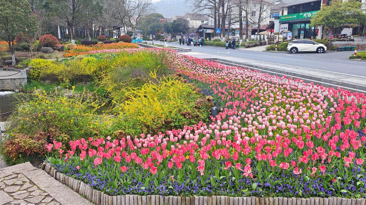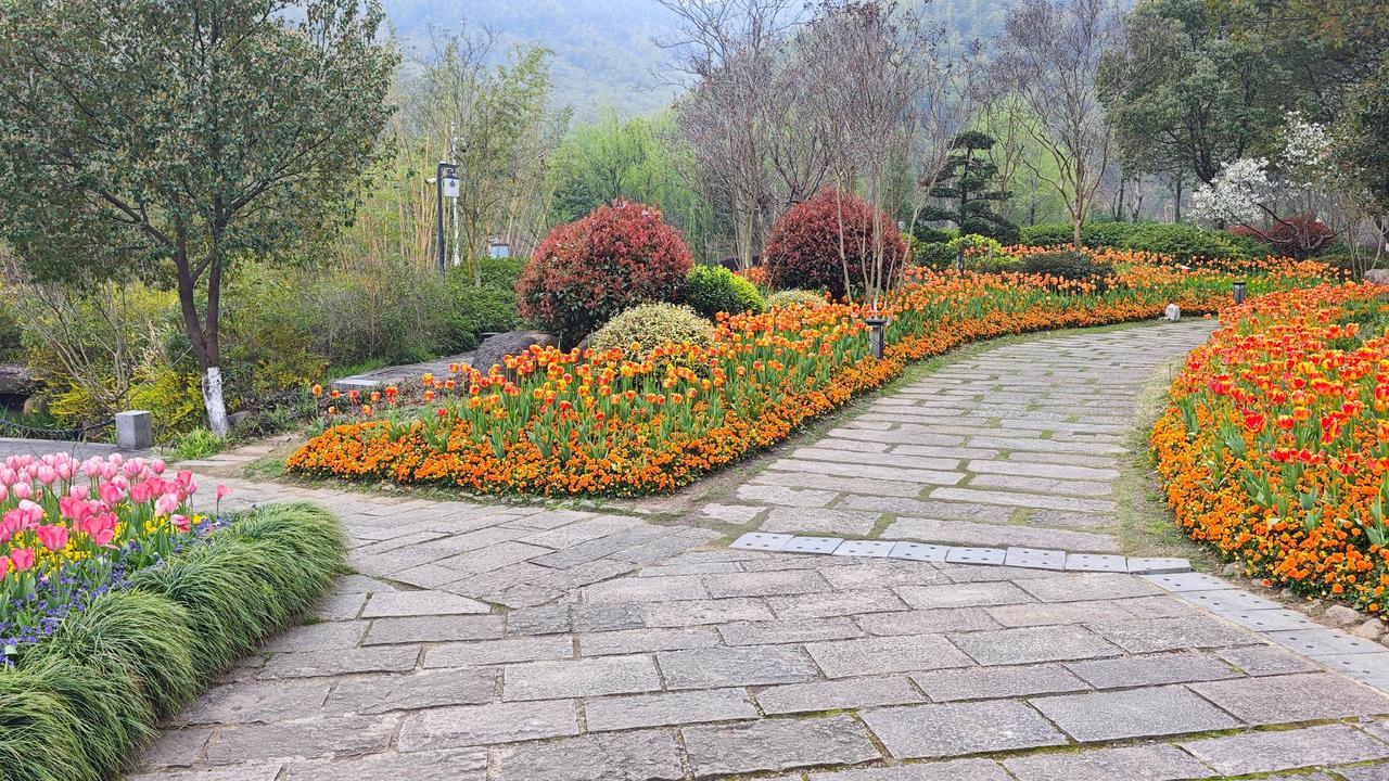 花田边还留着些老矿坑的痕迹,不仔细看,都快被花草盖住了。站在这儿,一边是开得热烈的花,一边是刻着岁月的旧石,突然就懂了“绿水青山就是金山银山”不是一句口号,是余村人真真切切走出来的路。村里的老人说,以前哪敢想,家门口能有这么好看的花,现在春天来赏花的人多了,农家乐、民宿都火了,日子比以前踏实多了。
