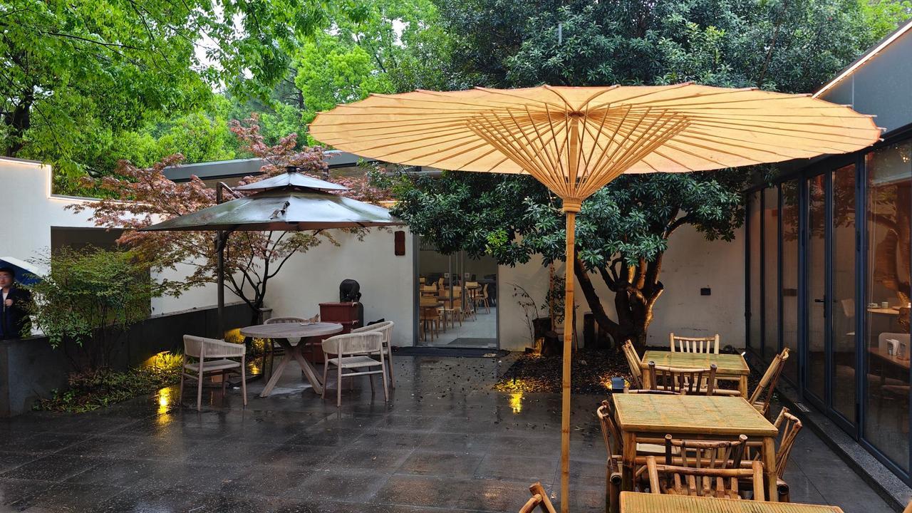 来安吉本是冲着竹海茶山,却误打误撞进了越庐松飨,一脚踏进了两千多年的古越时光里。餐厅藏在安吉古城国家考古遗址公园,这里曾是秦代鄣郡的郡治所在,两千五百年的文脉就埋在脚下,推门就是白墙黛瓦、曲径通幽的中式庭院,说它是餐厅,更像一座长在山水间的越文化别院。