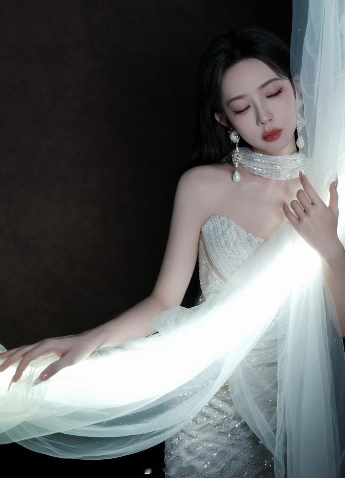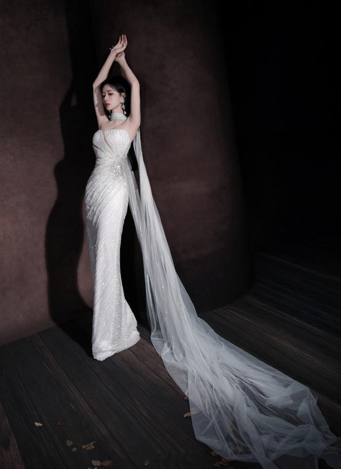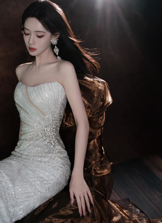 银闪抹胸裙、眼神慵懒气质灵动——孟子义。每日明星美图分享