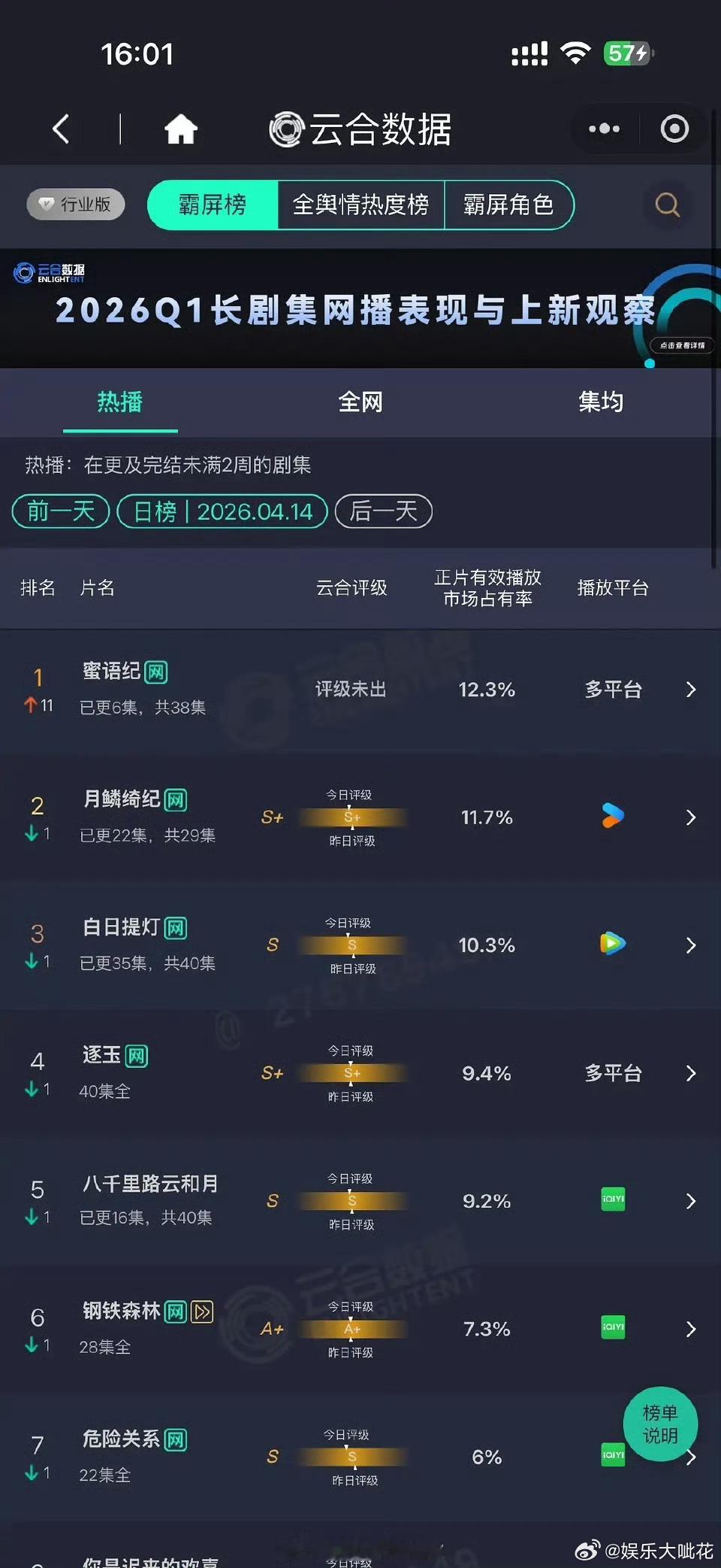 蜜语纪开播次日登顶云合蜜语纪开播两日云合登顶蜜语纪——霸道总裁爱上离婚做保洁的我 下沉市场都很喜欢 再加上男帅女美 都还是国民度很好的演员