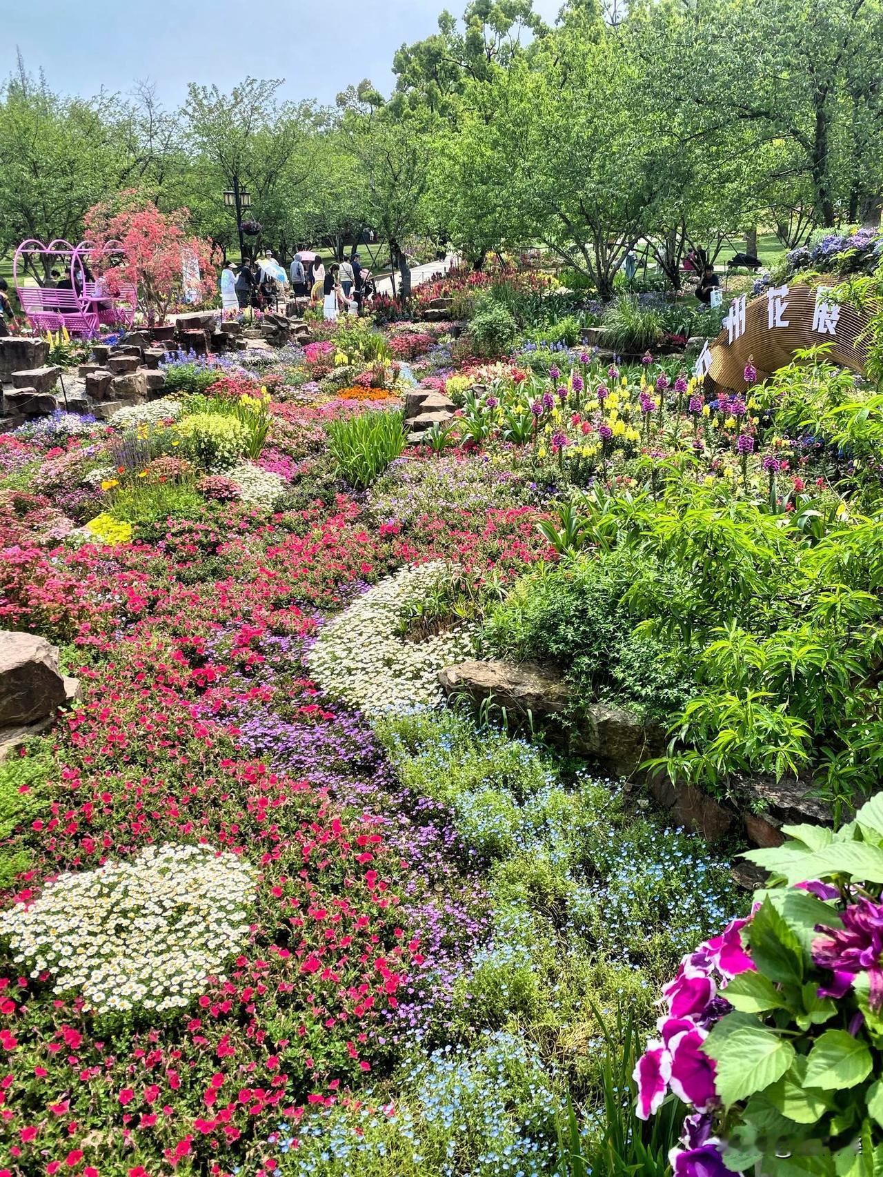 晒出你的本地生活苏州春天赏花 踏入这“莫奈花园”般的花会,仿佛走进了一幅流动的油画。五彩斑斓的花朵肆意绽放,红的似火,粉的如霞,白的像雪,交织在一起,让人目不暇接。