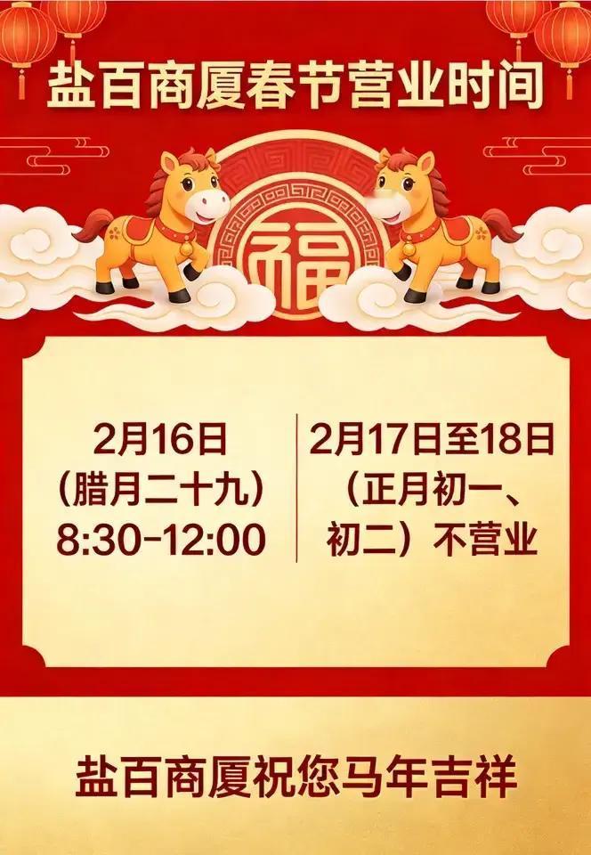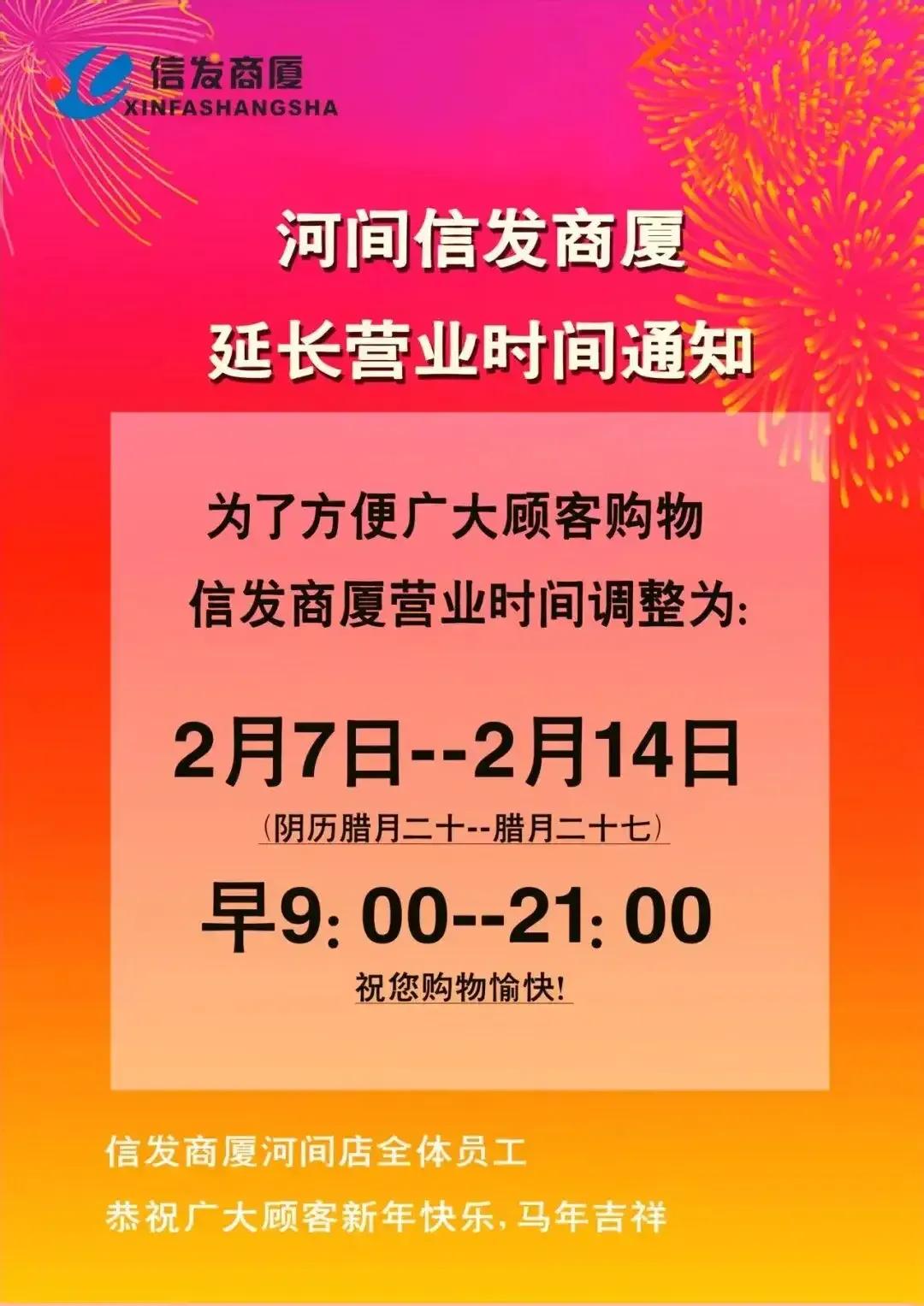 河间各大商业场所春节营业时间公布 1. 信誉楼百货河间店 特色:年货齐全,一