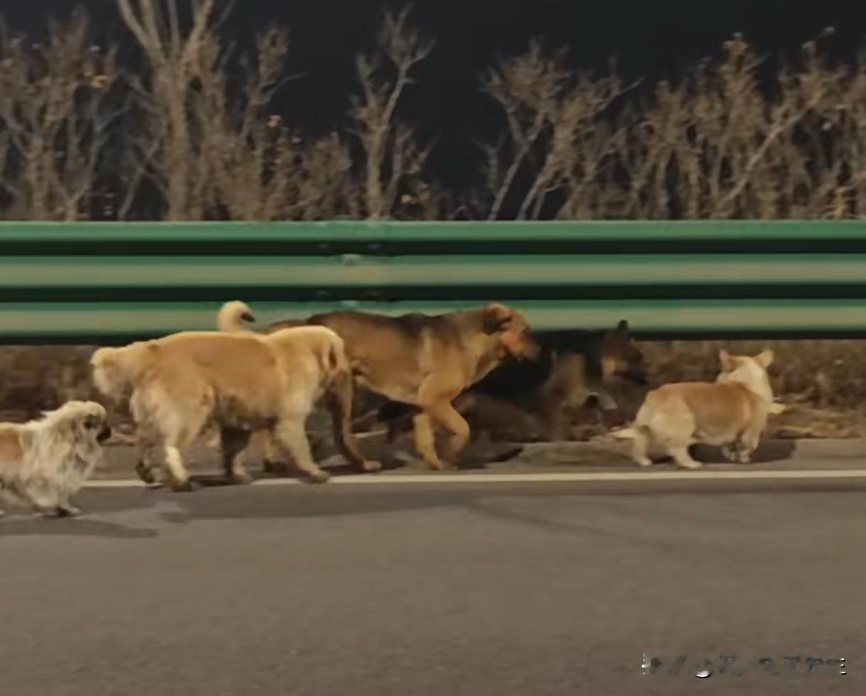 被偷狗贼装上车,半路从高速上掉下来,结伴跋涉17公里,全部平安回家。德牧受伤走不动,其它狗就把它护在中间,大的走外侧挡车,小的跟在旁边。一路从公路到田野,从白天到黑夜,一只都没丢。