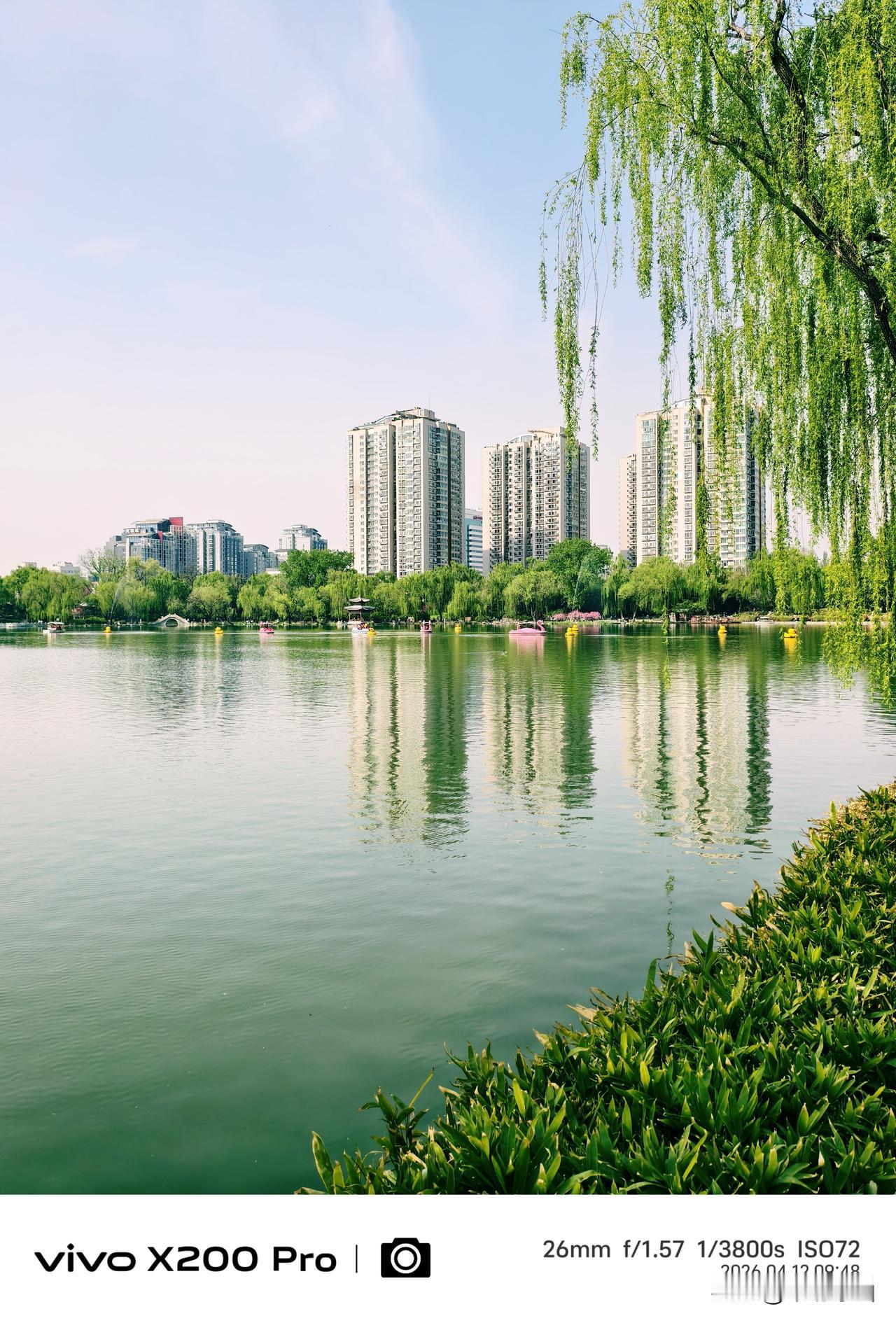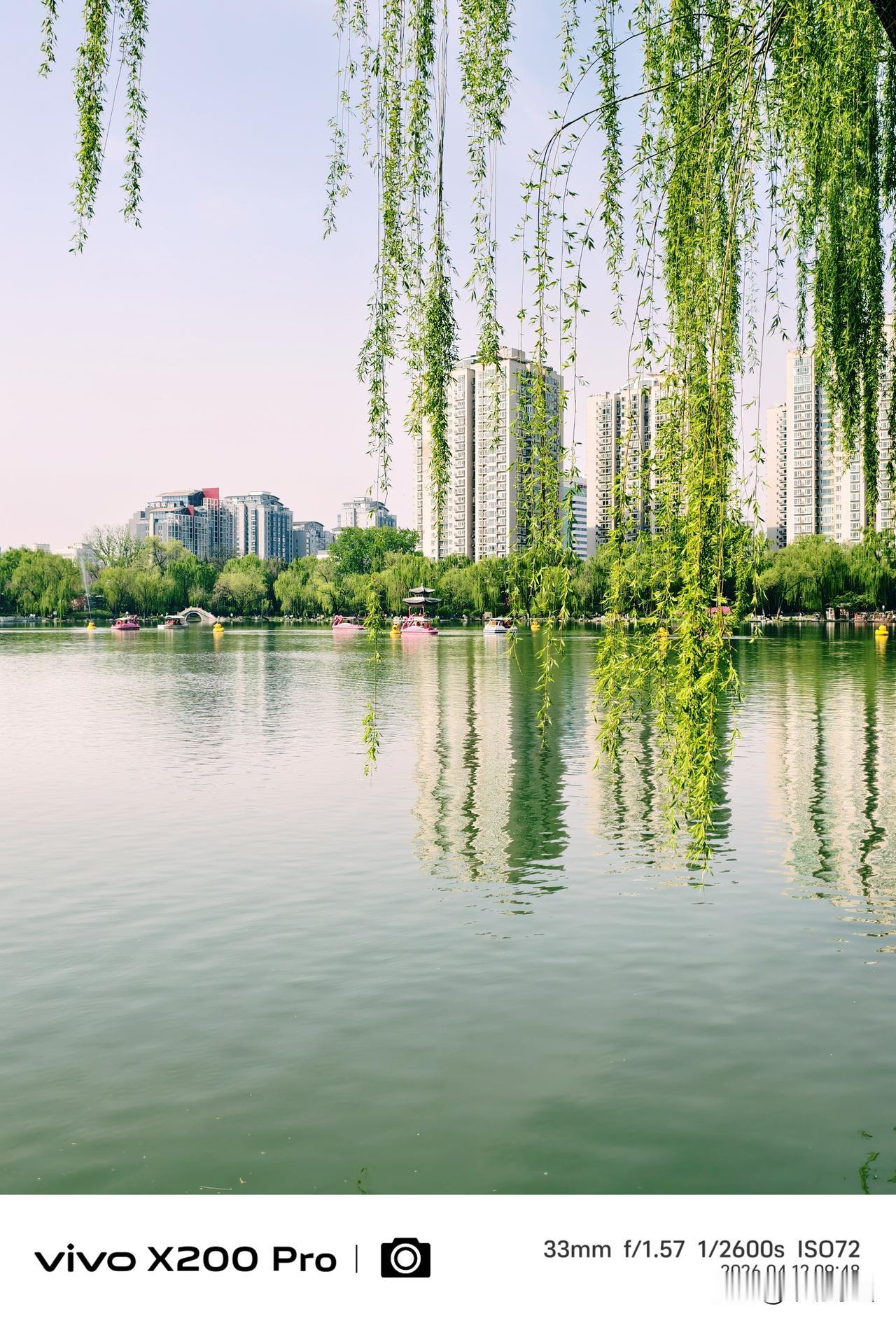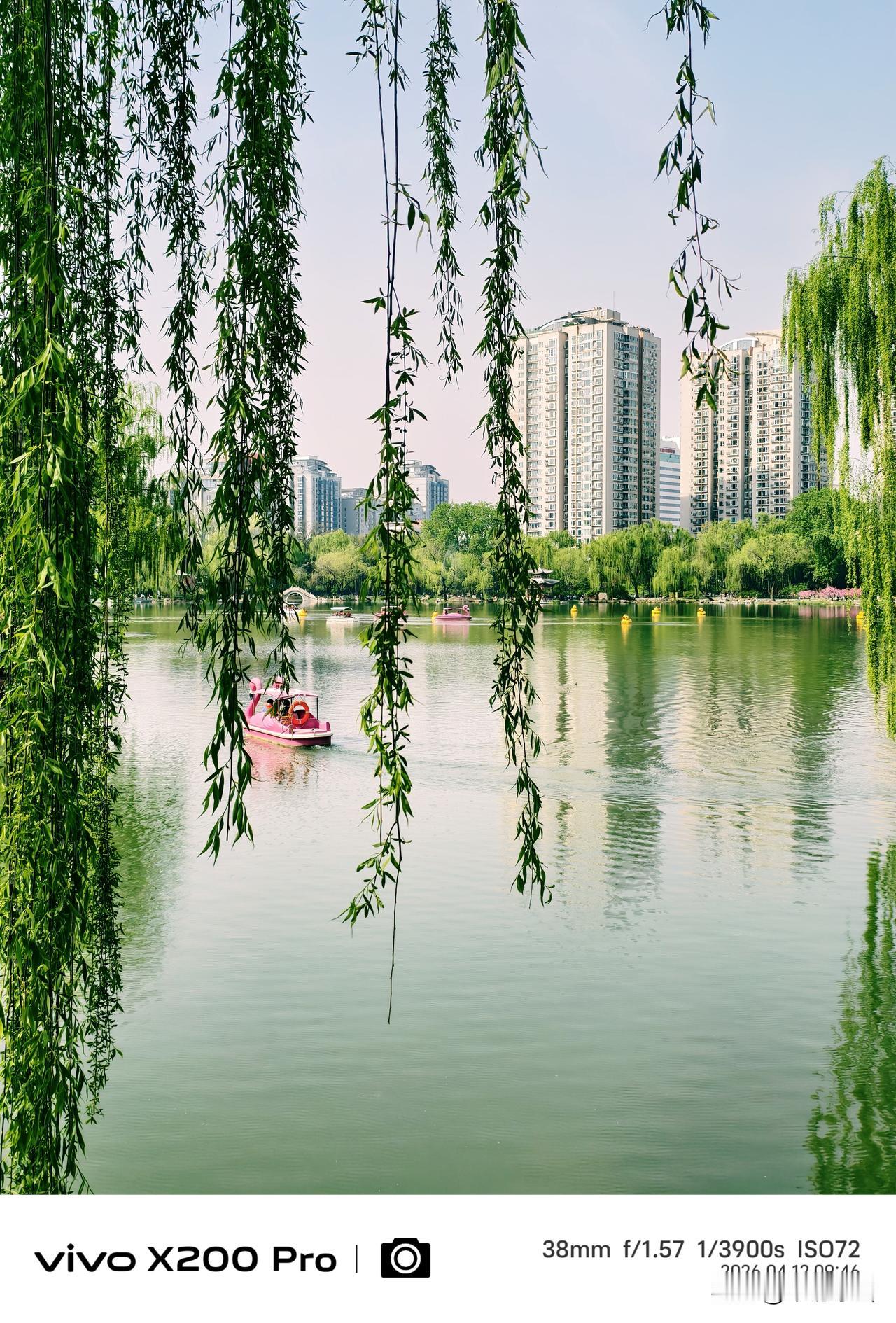 四月的北京,春暖花开的季节,紫竹院公园,绿柳成荫,湖光倒映,随手一拍,景色优美,