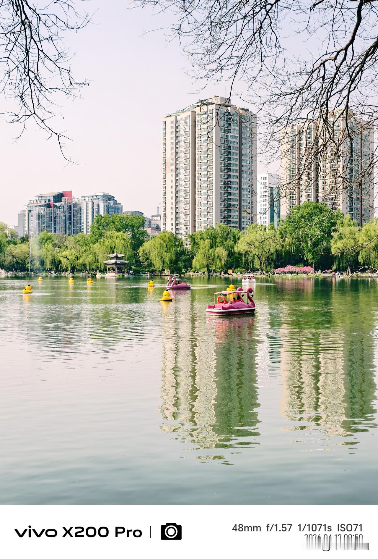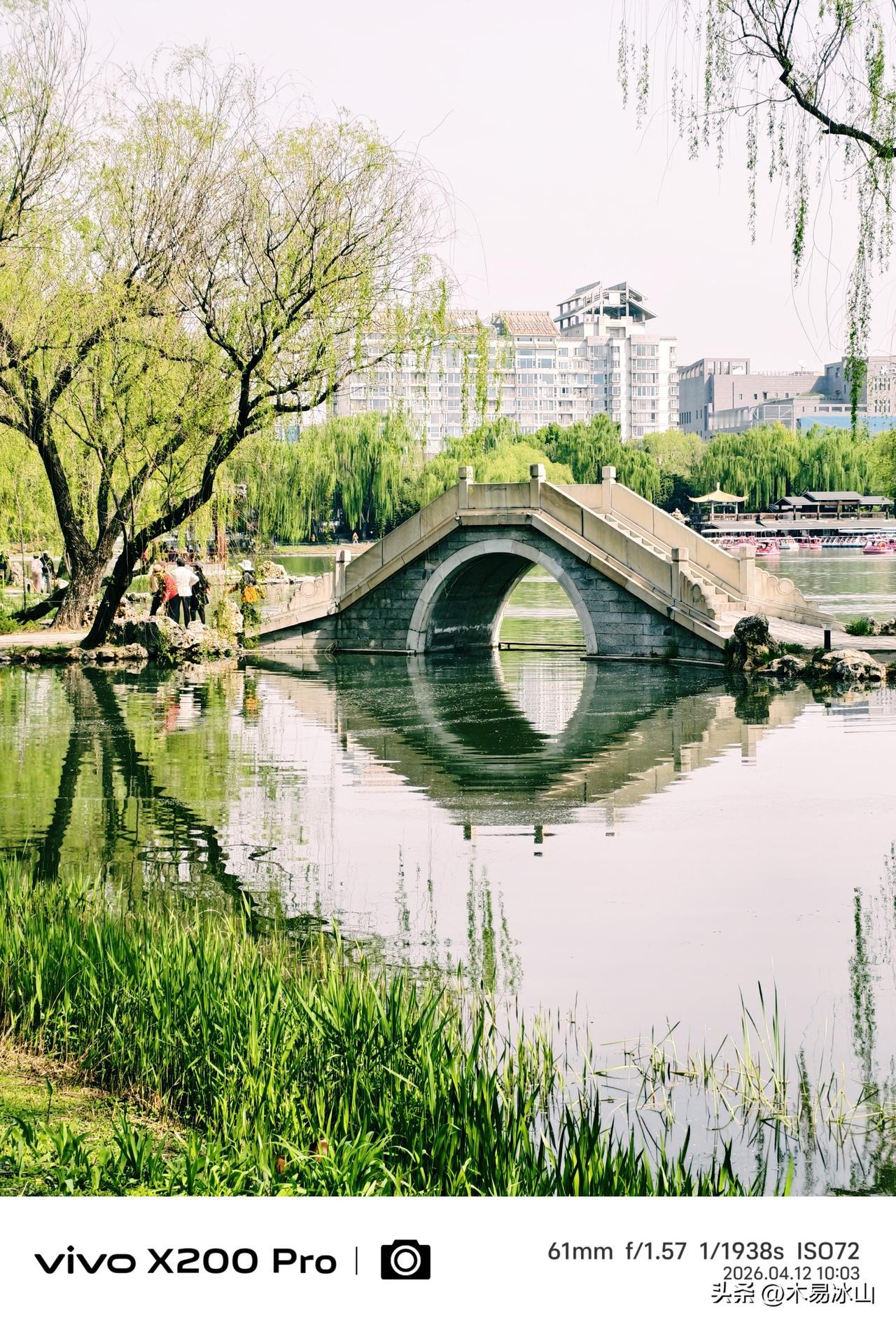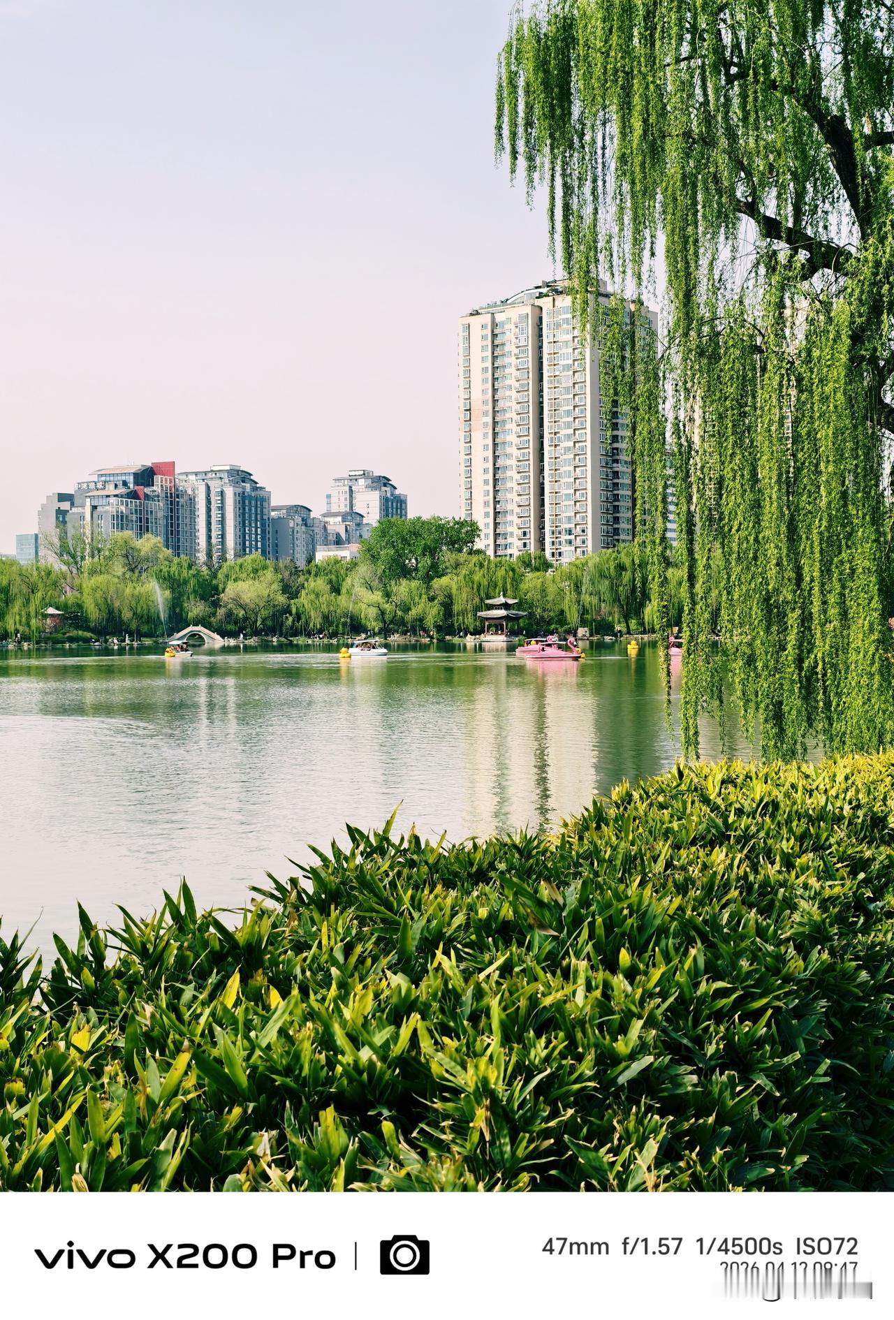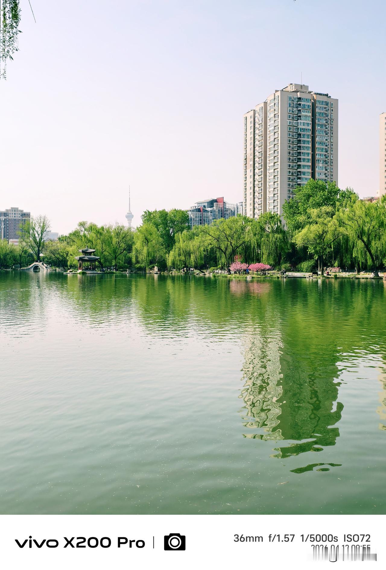四月的北京,春暖花开的季节,紫竹院公园,绿柳成荫,湖光倒映,随手一拍,景色优美,