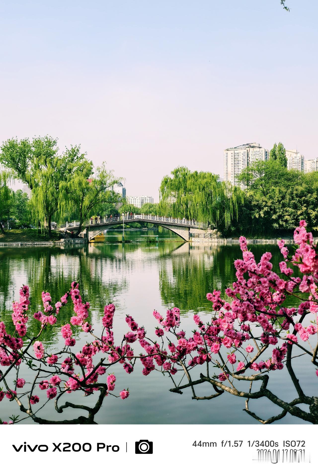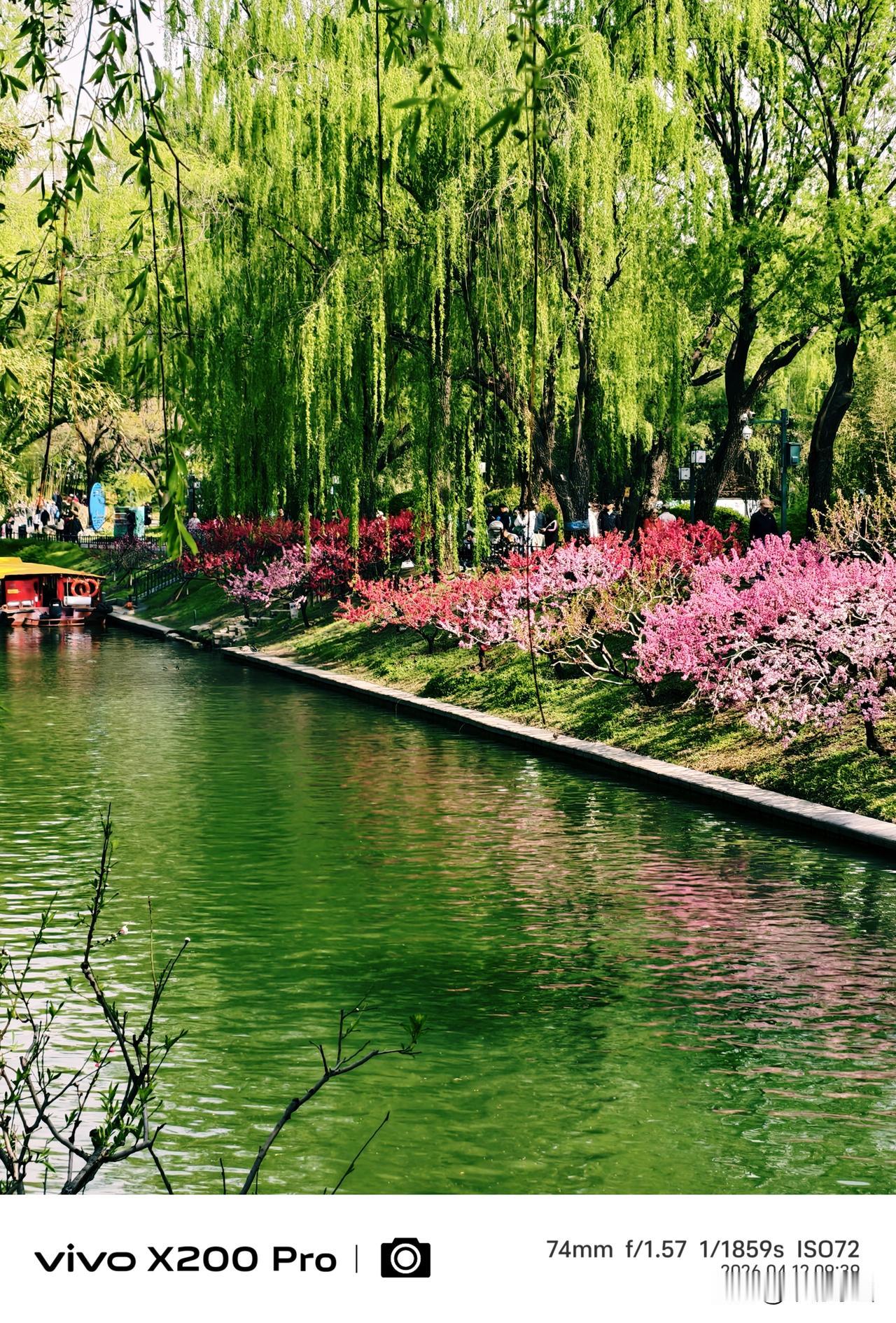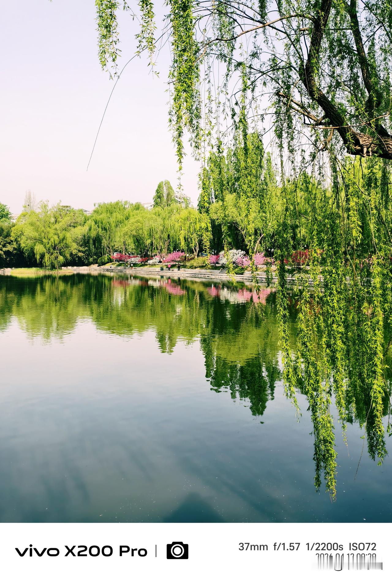 四月的北京,花红柳绿,紫竹院公园,绿柳荫荫,随手一拍,满眼绿色,湖光倒影,养眼养