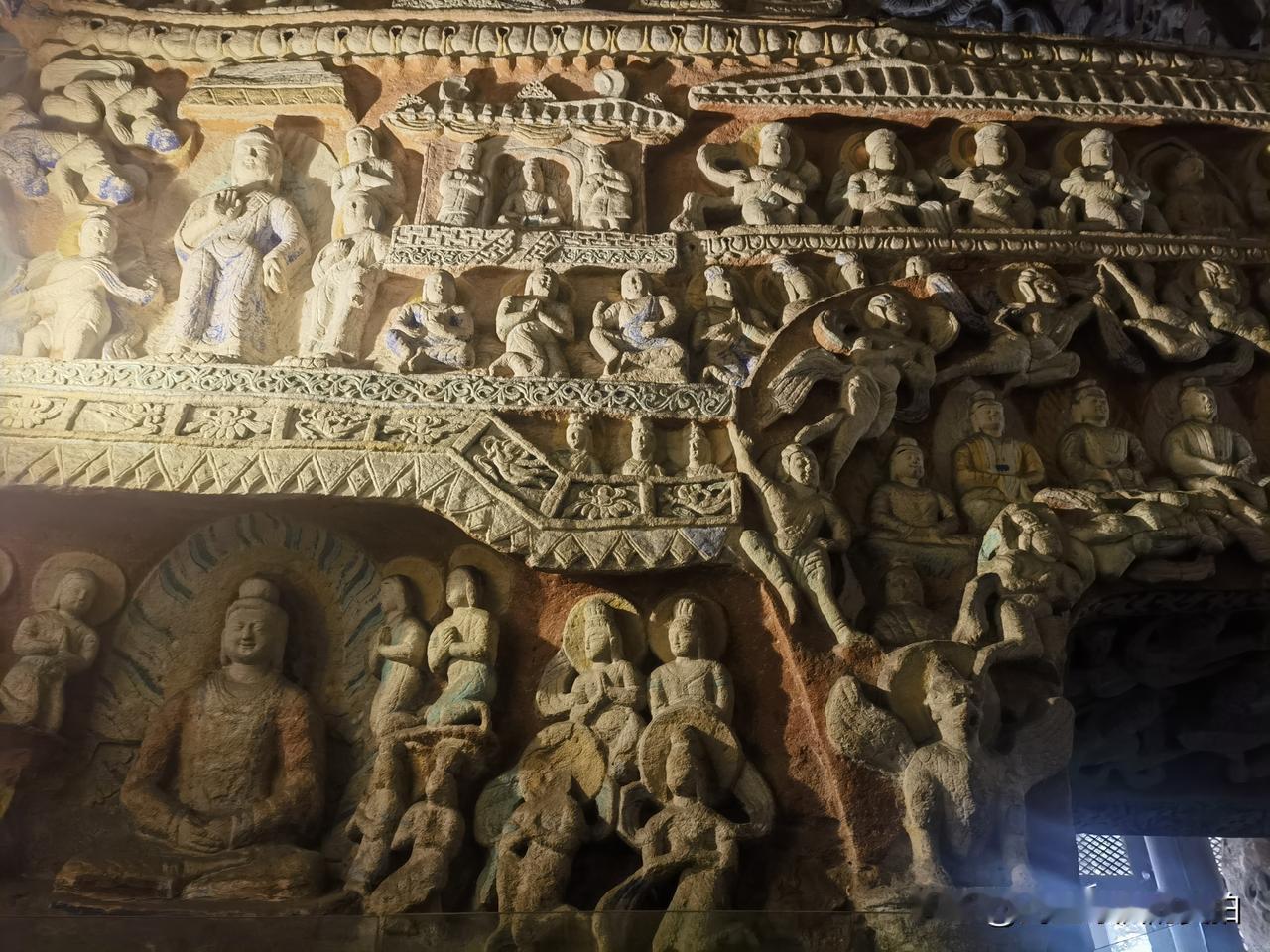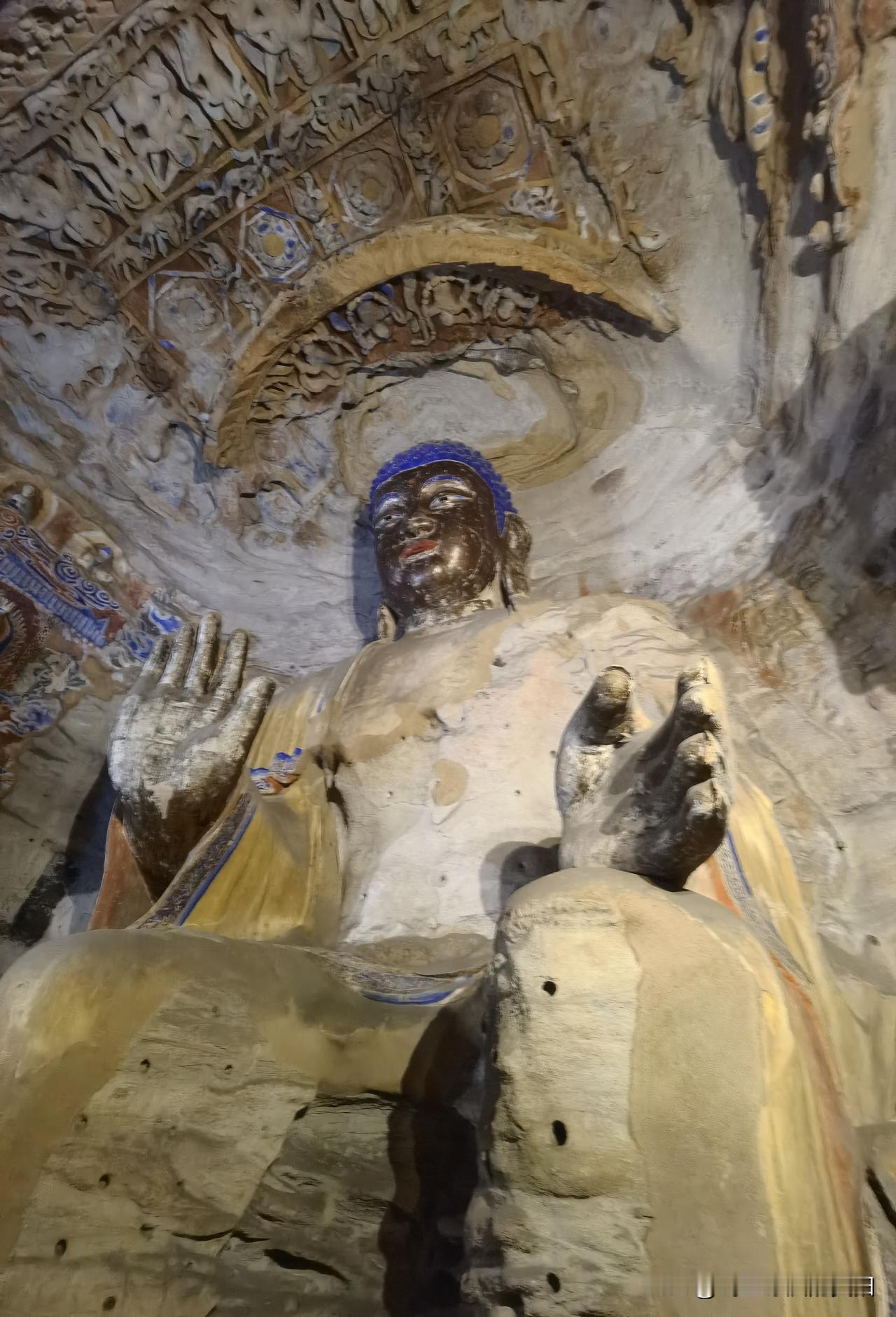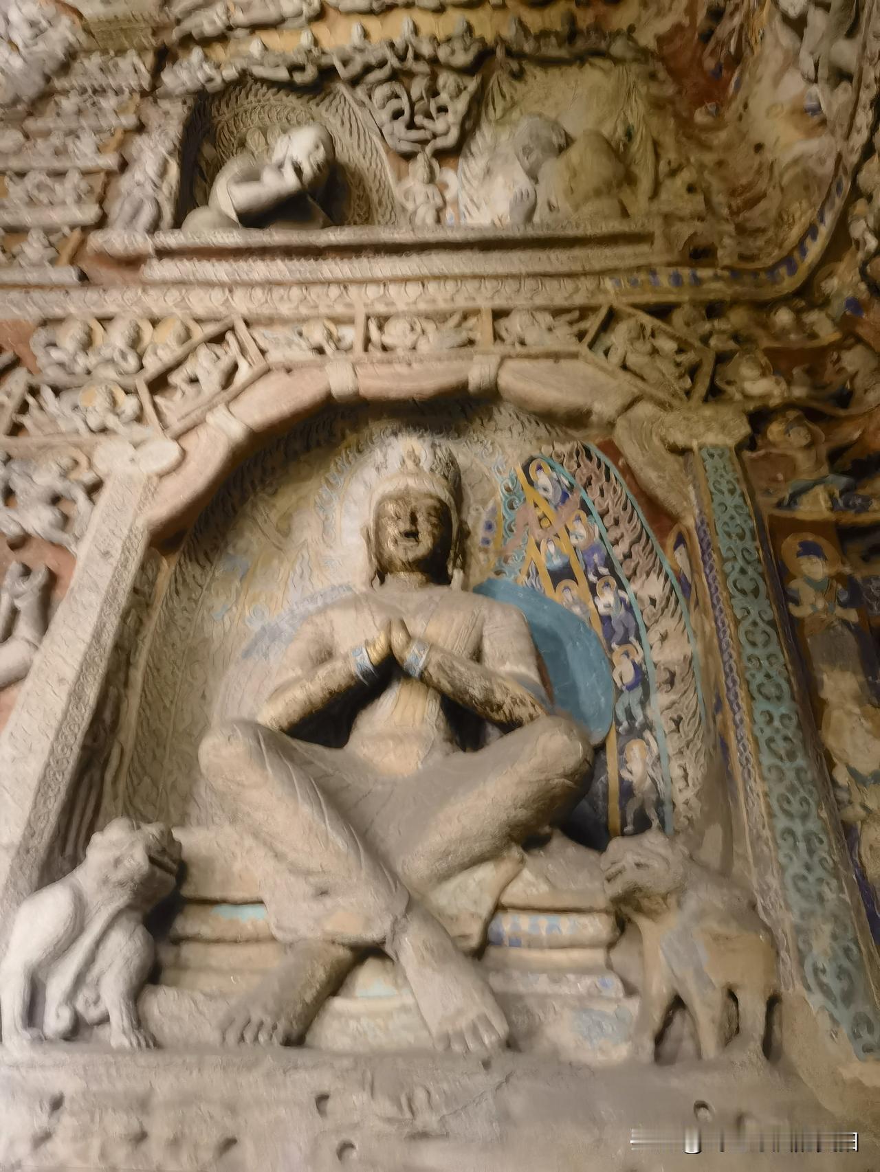 今天给大家分享几张大同云冈石窟第九窟照片,第九窟是云冈石窟五华洞窟之一,色彩艳丽,是北魏石窟最精美洞窟。与第十窟是一组双窟,为前廊后室殿堂式风格。色彩为后期明清时期的彩绘。可与第十一至第十三一起游览,第十二窟也被称为“音乐窟”