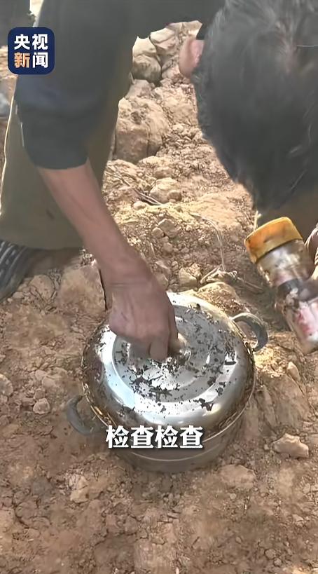 老人迫不及待地掀开锅盖,里面用袋子层层包裹着的现金露了出来。