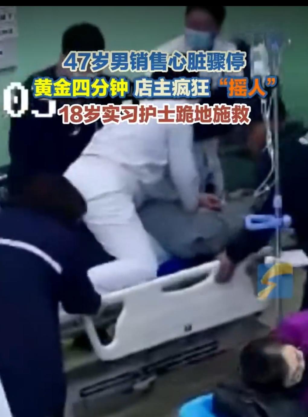 急诊科医生一听,马上让18岁的实习护士曹梓彤推上担架车,跟着王大鹏往店里赶。