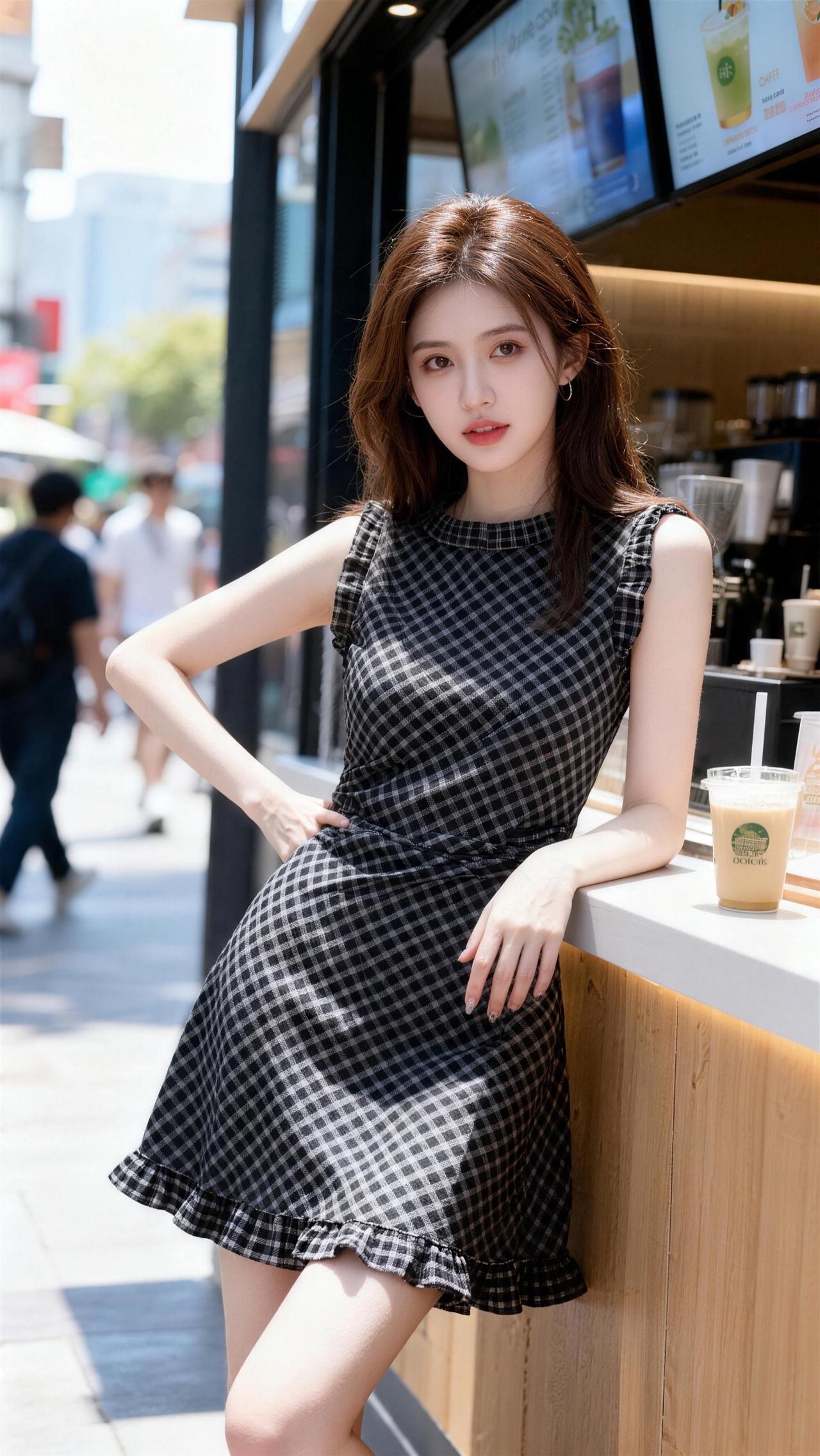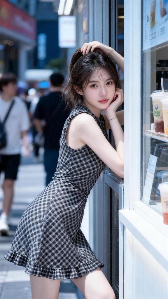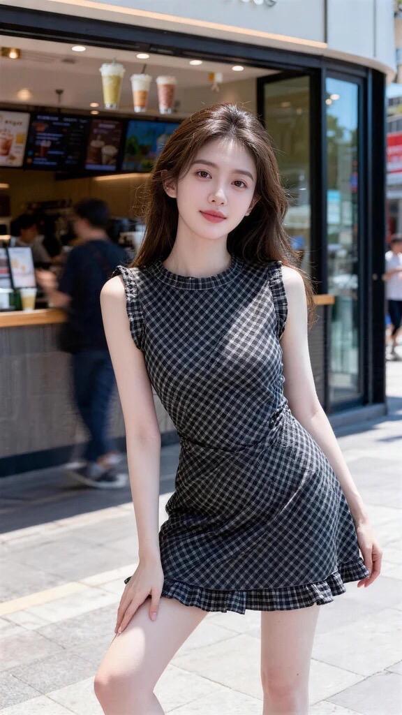 无袖格纹裙 甜美无袖连衣裙 街头甜心风 约会穿搭 通勤搭配