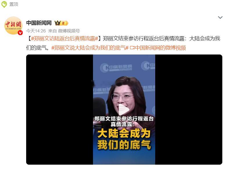 郑丽文访陆返台后真情流露,郑丽文说大陆会成为我们的底气 ,热点观点
