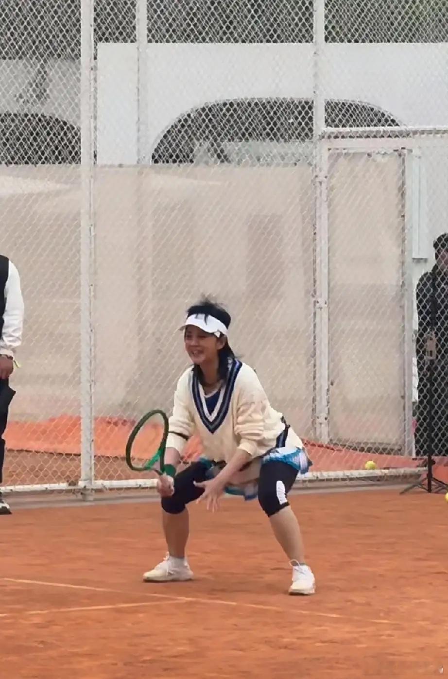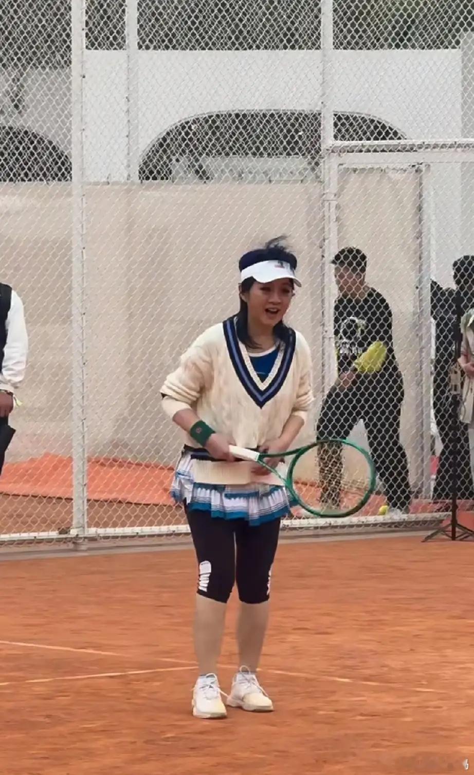 许戈辉参加了瞿颖举办的网球比赛,上半身穿针织毛衣,下半身穿紧身七分裤,以前知性的