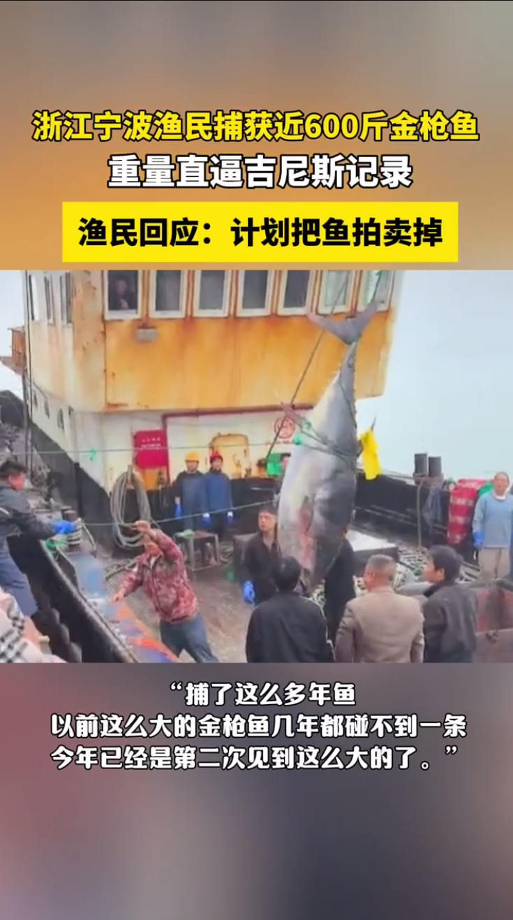渔民回应又捕获近600斤重金枪鱼近600斤蓝鳍金枪鱼现身东海,重量直逼吉尼斯世界纪录,资深渔民感叹多年难遇。这一现象直观体现东海生态修复与资源保护成效斐然渔民捕获近600斤金枪鱼上架拍卖